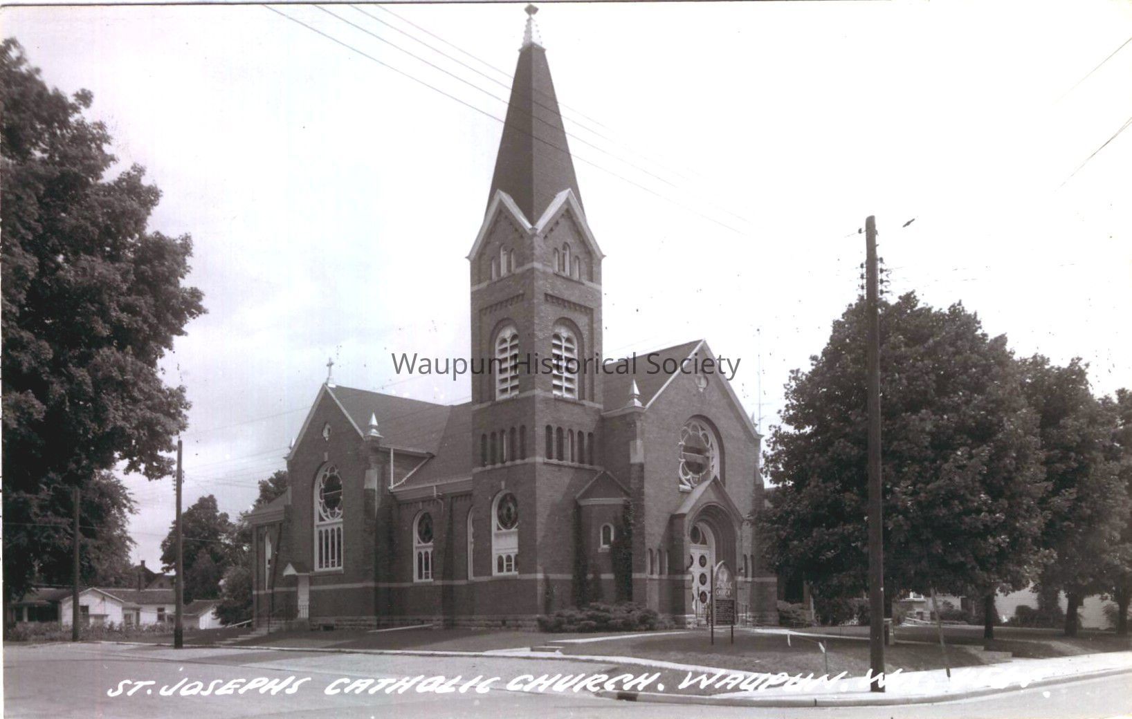 Postcard, Church, St. Joseph Catholic, #456-F. Waupun Churches. This Black & White picture postcard shows the St. Joseph's Catholic Church of Waupun, Wis. It was donated by Jim Laird from his personal collection. This is an unused postcard.Acquisition
