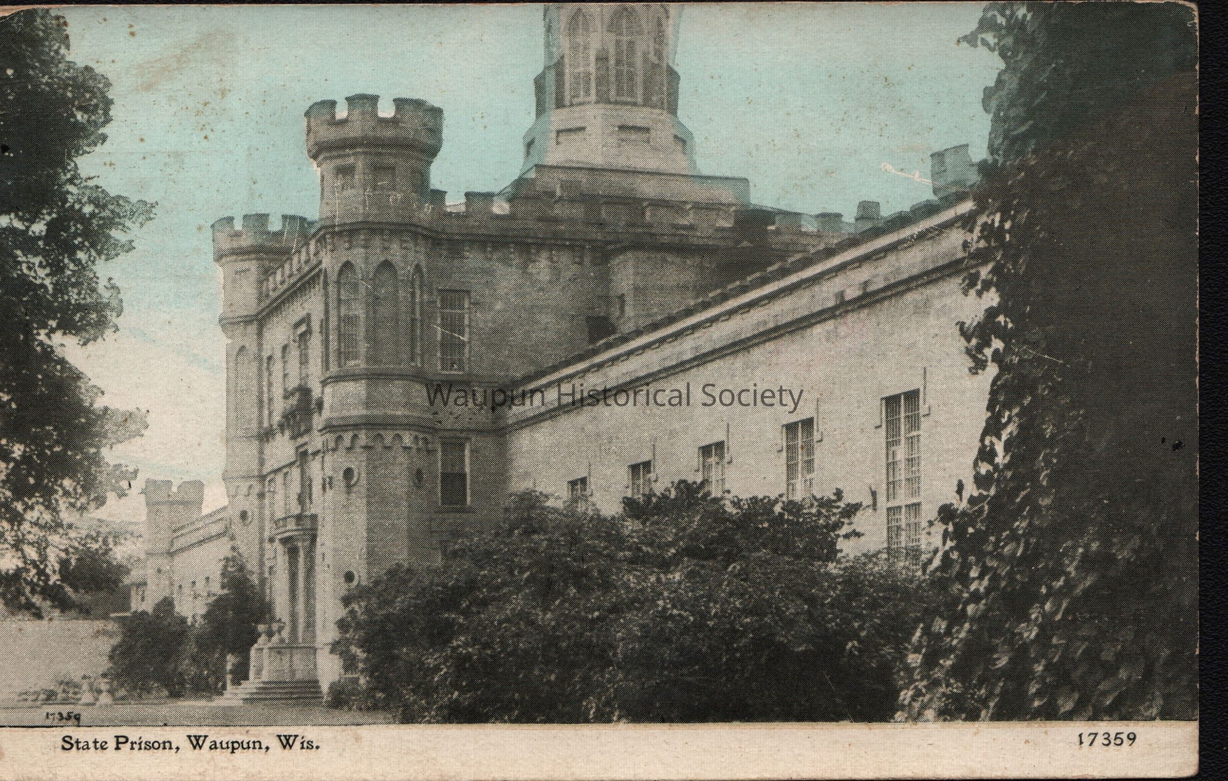 Postcard, Corrections, Wisconsin State Prison, #17359. A collection of souvenir postcards, circa 1910 featuring the Waupun State Prison. This postcard was made by the C. U. Williams company of Bloomington, IL.Acquisition