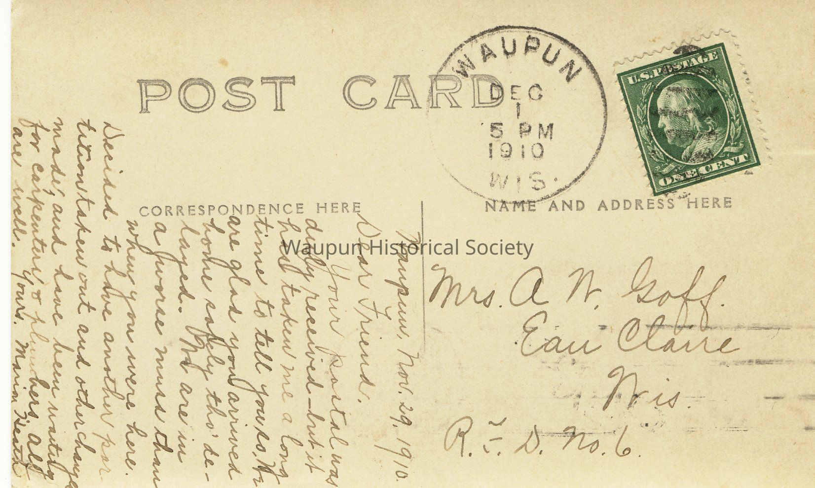 Postcard, Corrections, Wisconsin State Prison. A collection of souvenir postcards, circa 1910 featuring the Waupun State Prison. Unless otherwise noted, these postcards were taken by Stanley Johnson a local photographer at the time.