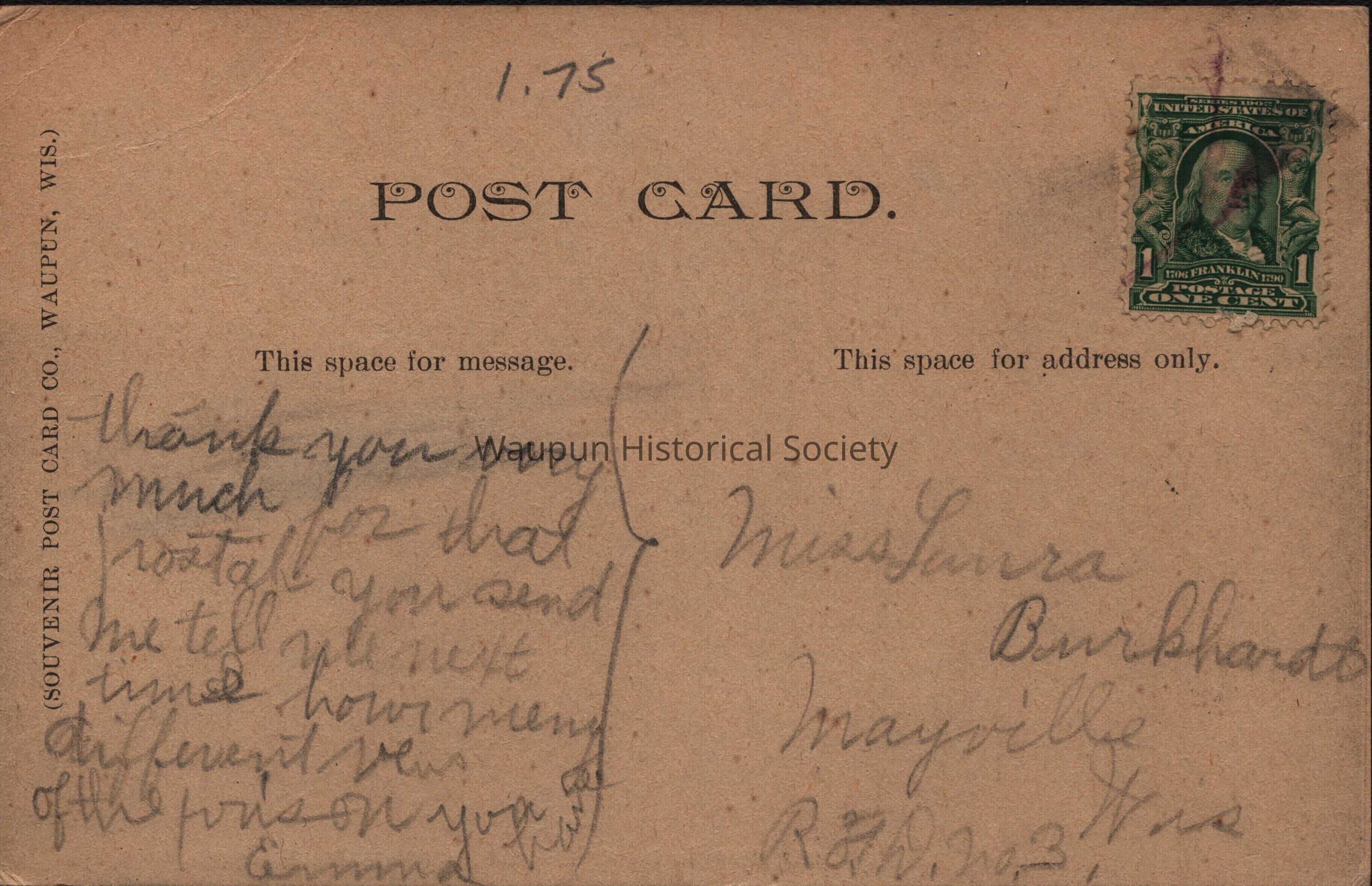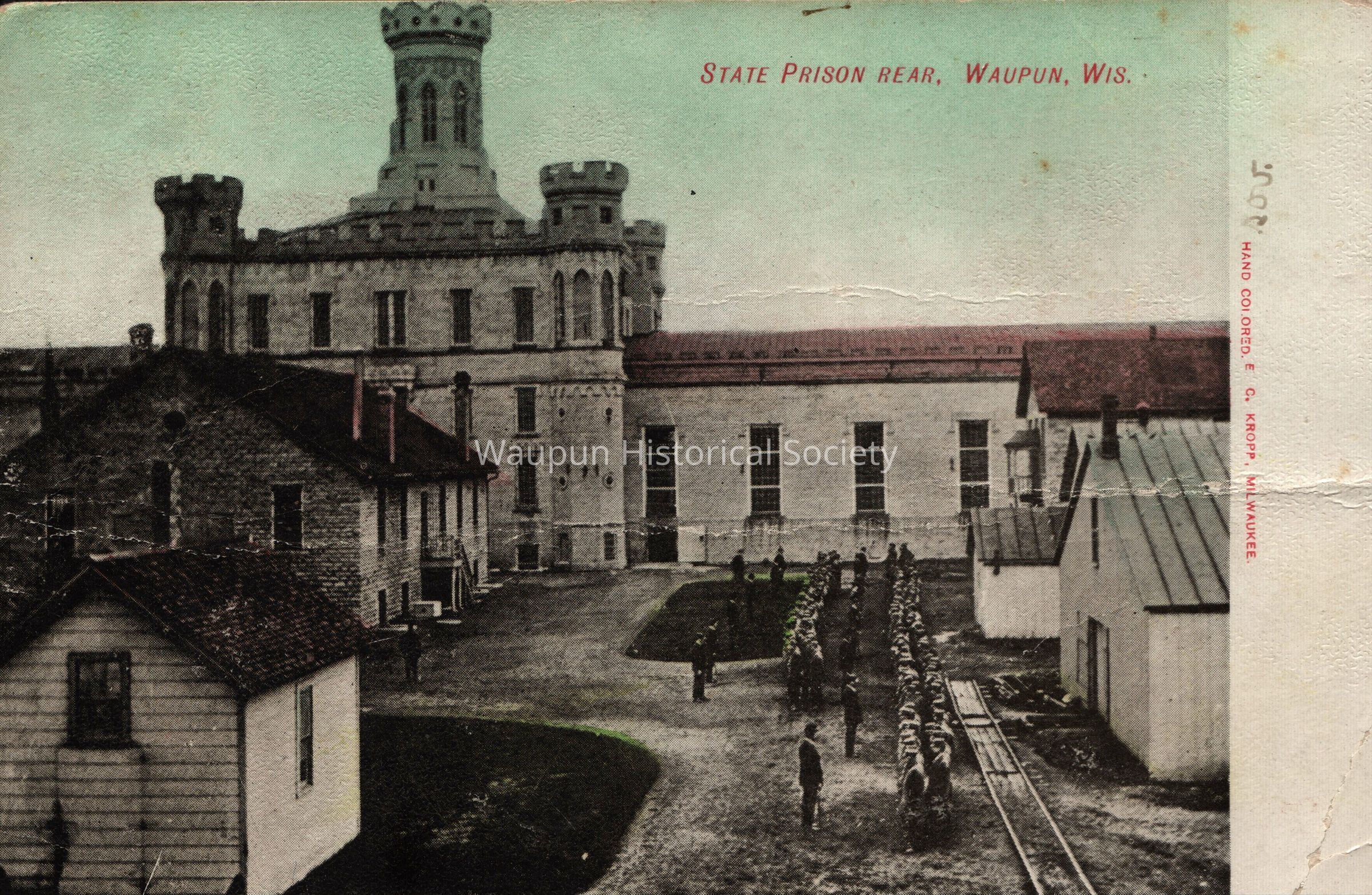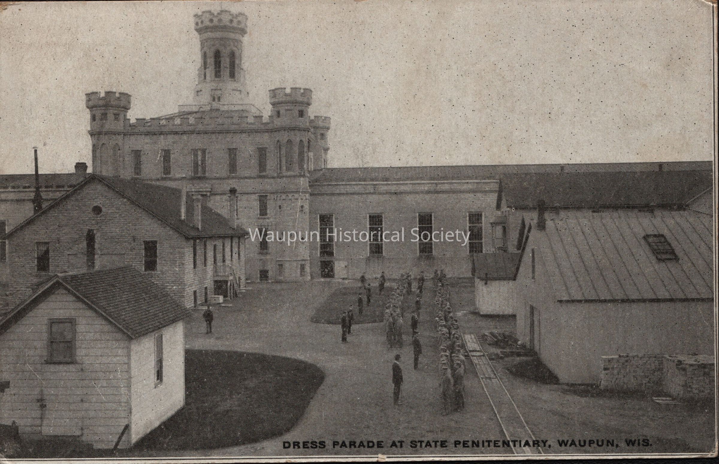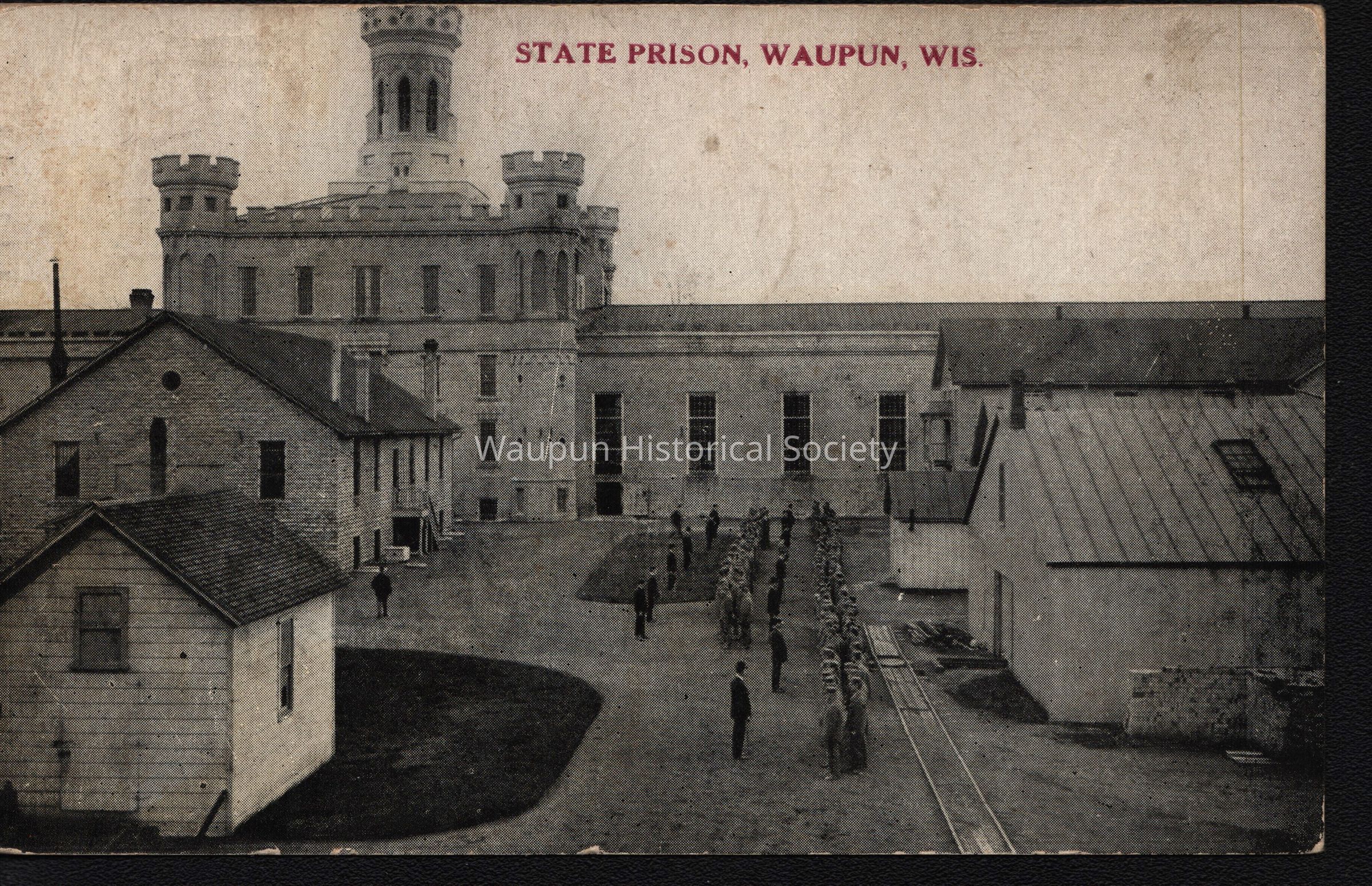 Postcard, Corrections, Wisconsin State Prison. A collection of souvenir postcards, circa 1910 featuring the Waupun State Prison. Unless otherwise noted, these postcards were taken by Stanley Johnson a local photographer at the time.