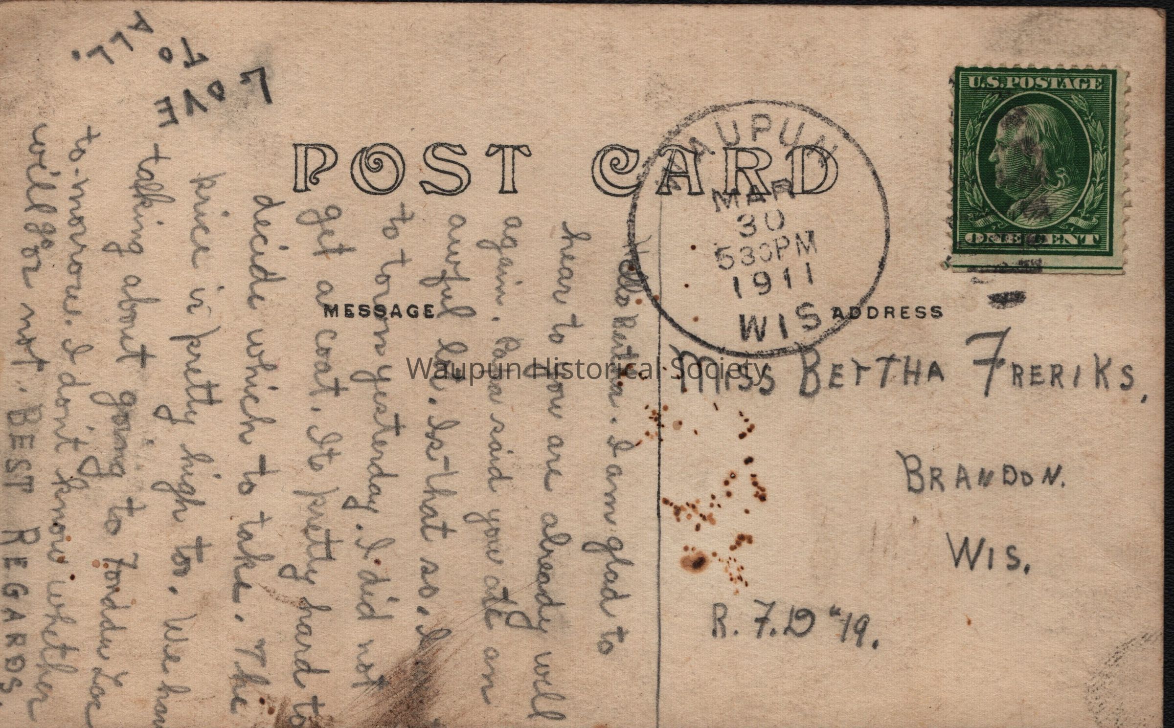 Postcard, Corrections, Wisconsin State Prison. A collection of souvenir postcards, circa 1910 featuring the Waupun State Prison. Unless otherwise noted, these postcards were taken by Stanley Johnson a local photographer at the time.