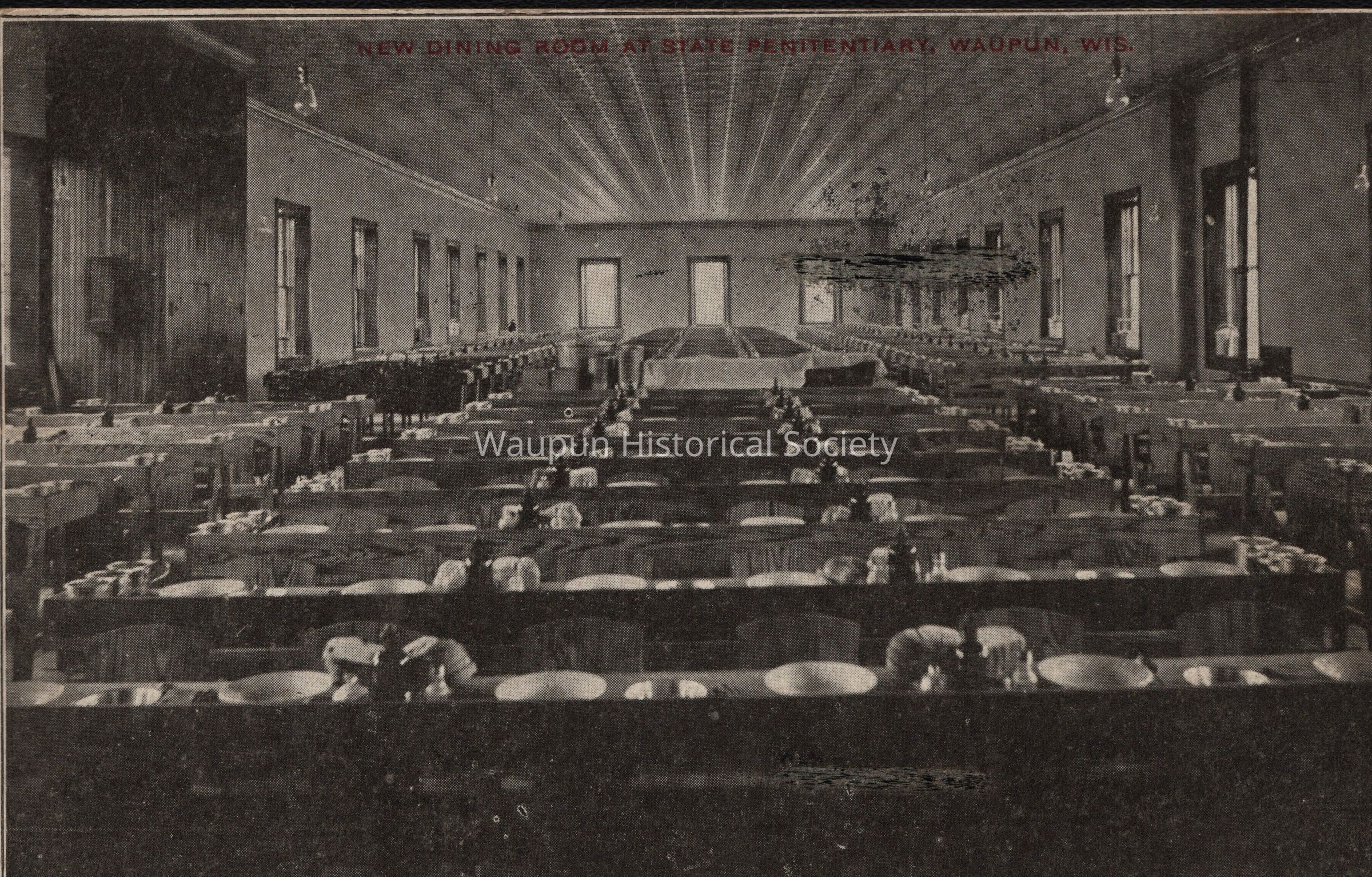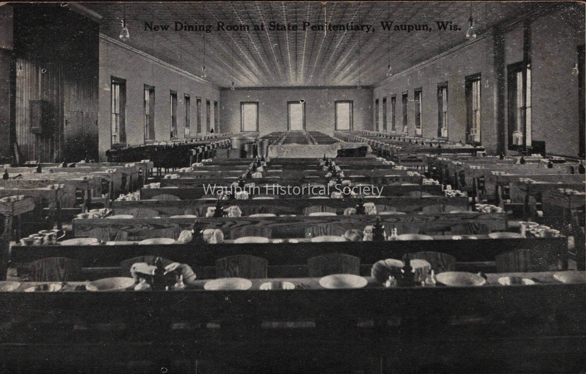 Postcard, Corrections, Wisconsin State Prison, Dining Room. A collection of souvenir postcards, circa 1910 featuring the Waupun State Prison. Unless otherwise noted, these postcards were taken by Stanley Johnson a local photographer at the time.