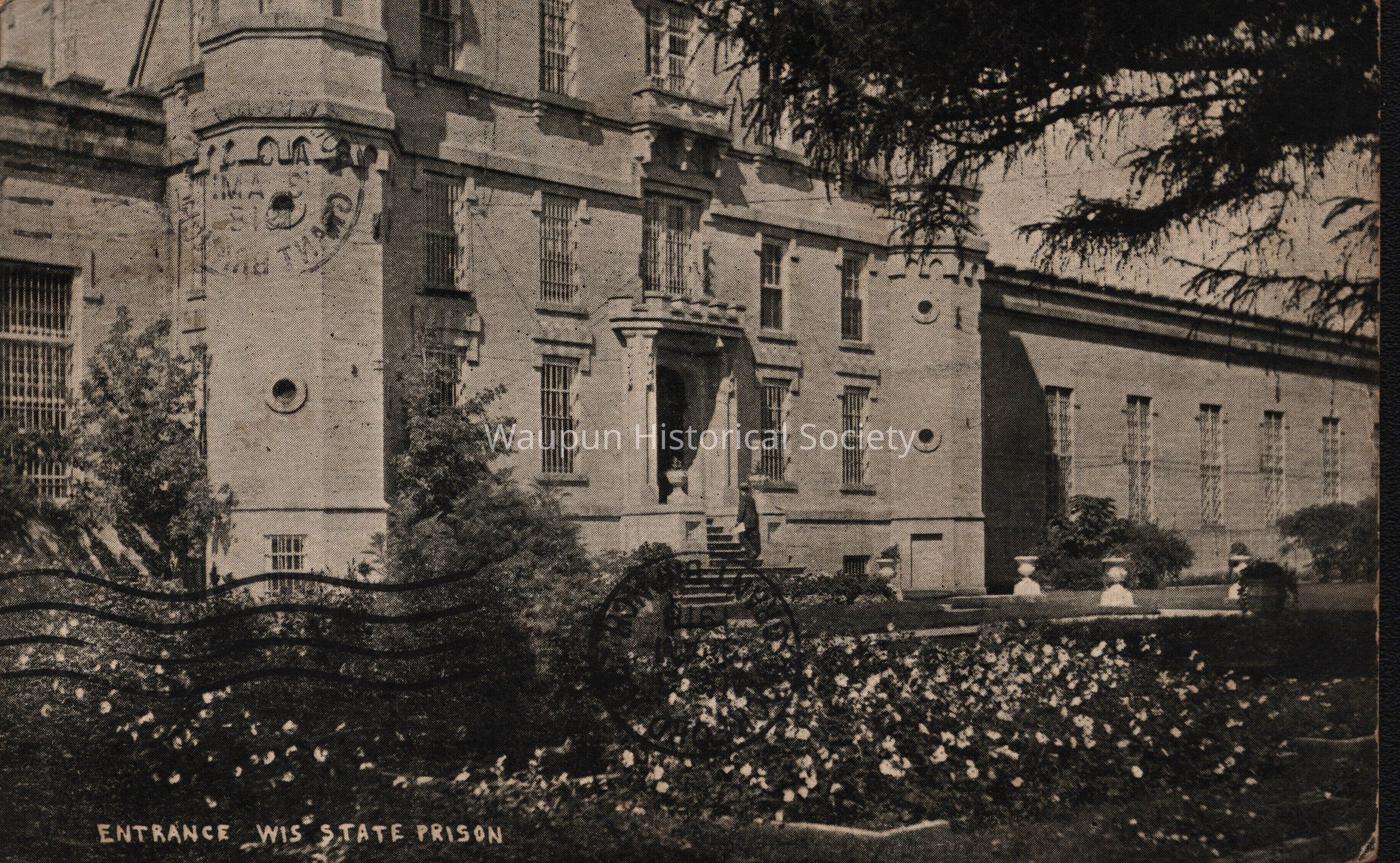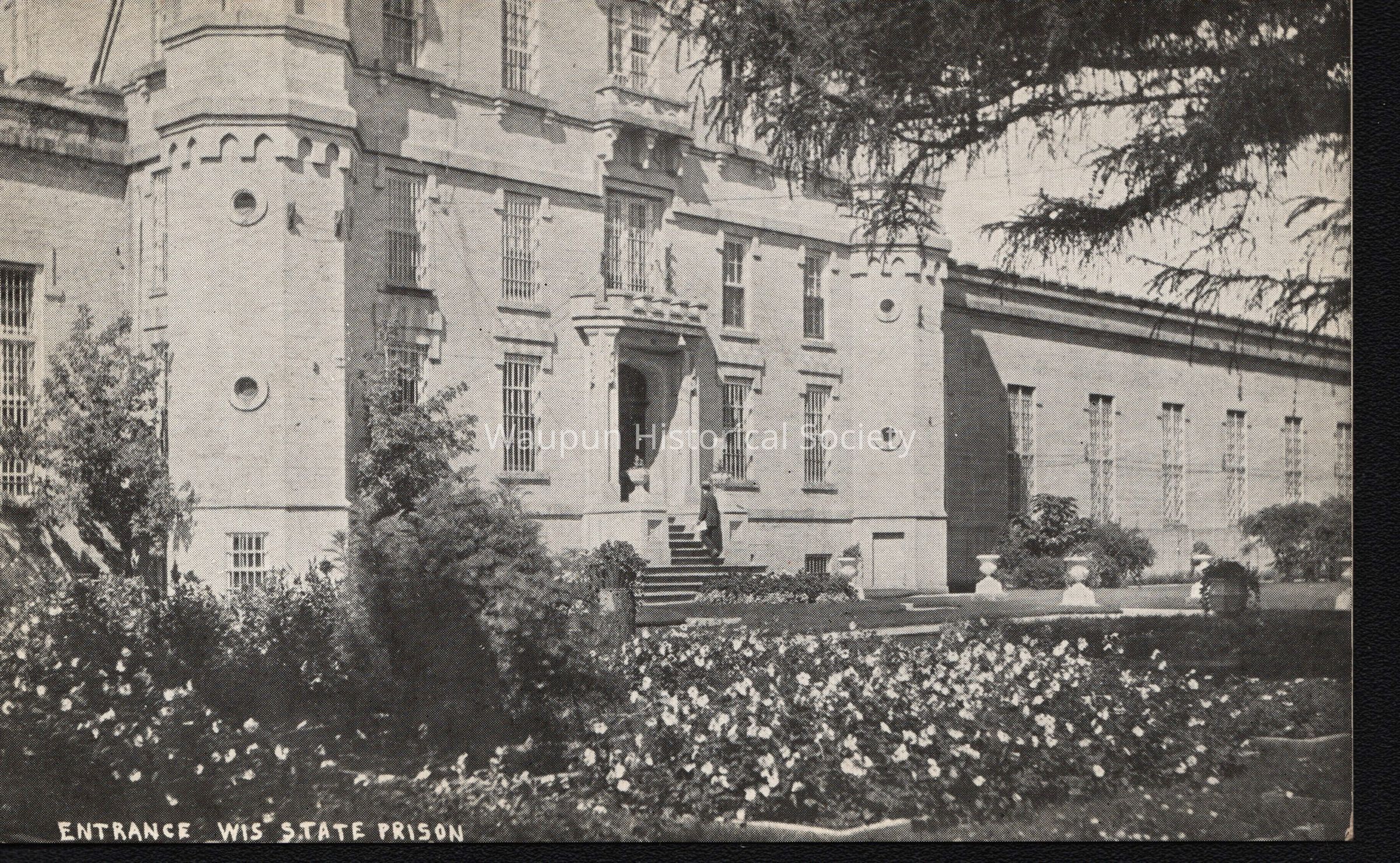 Postcard, Corrections, Wisconsin State Prison, Entrance. A collection of souvenir postcards, circa 1910 featuring the Waupun State Prison. Unless otherwise noted, these postcards are thought to be taken by Stanley Johnson a local photographer at the time.Acquisition