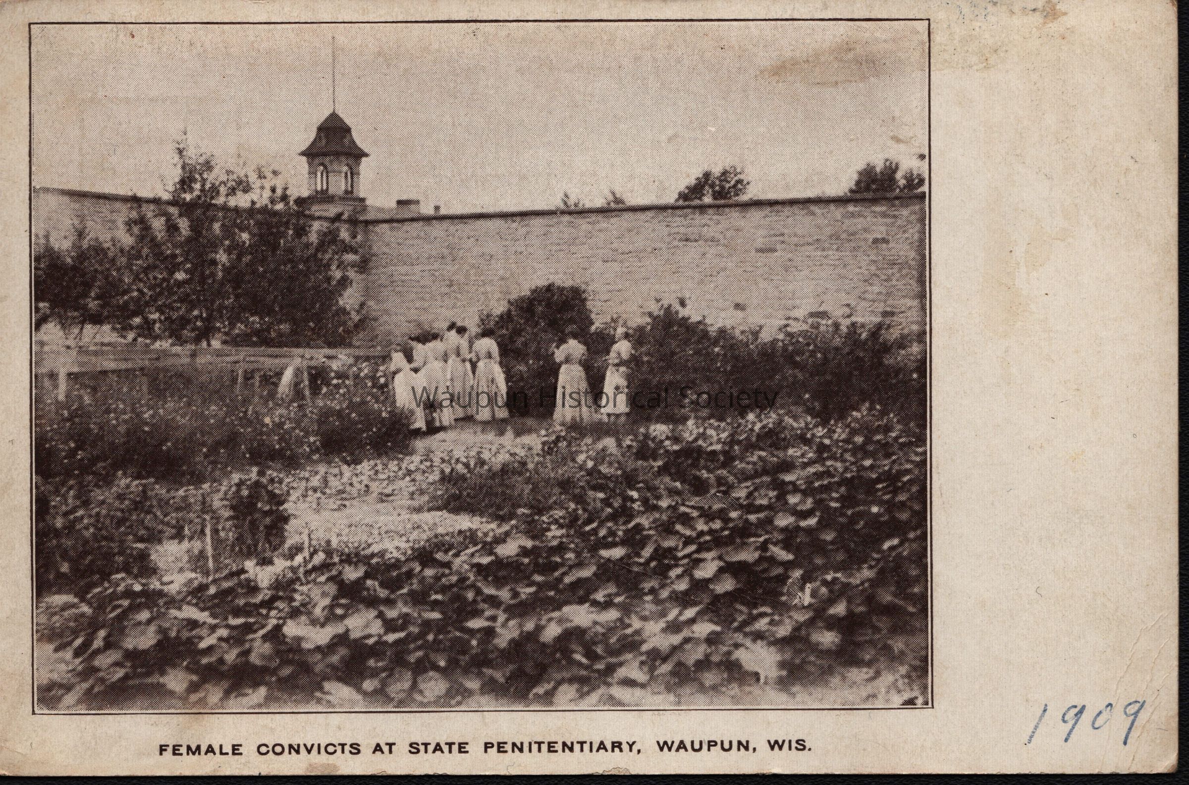 Postcard, Corrections, Wisconsin State Prison, Female Convicts in Flower Garden. A collection of souvenir postcards, circa 1910 featuring the Waupun State Prison. Unless otherwise noted, these postcards were taken by Stanley Johnson a local photographer at the time.