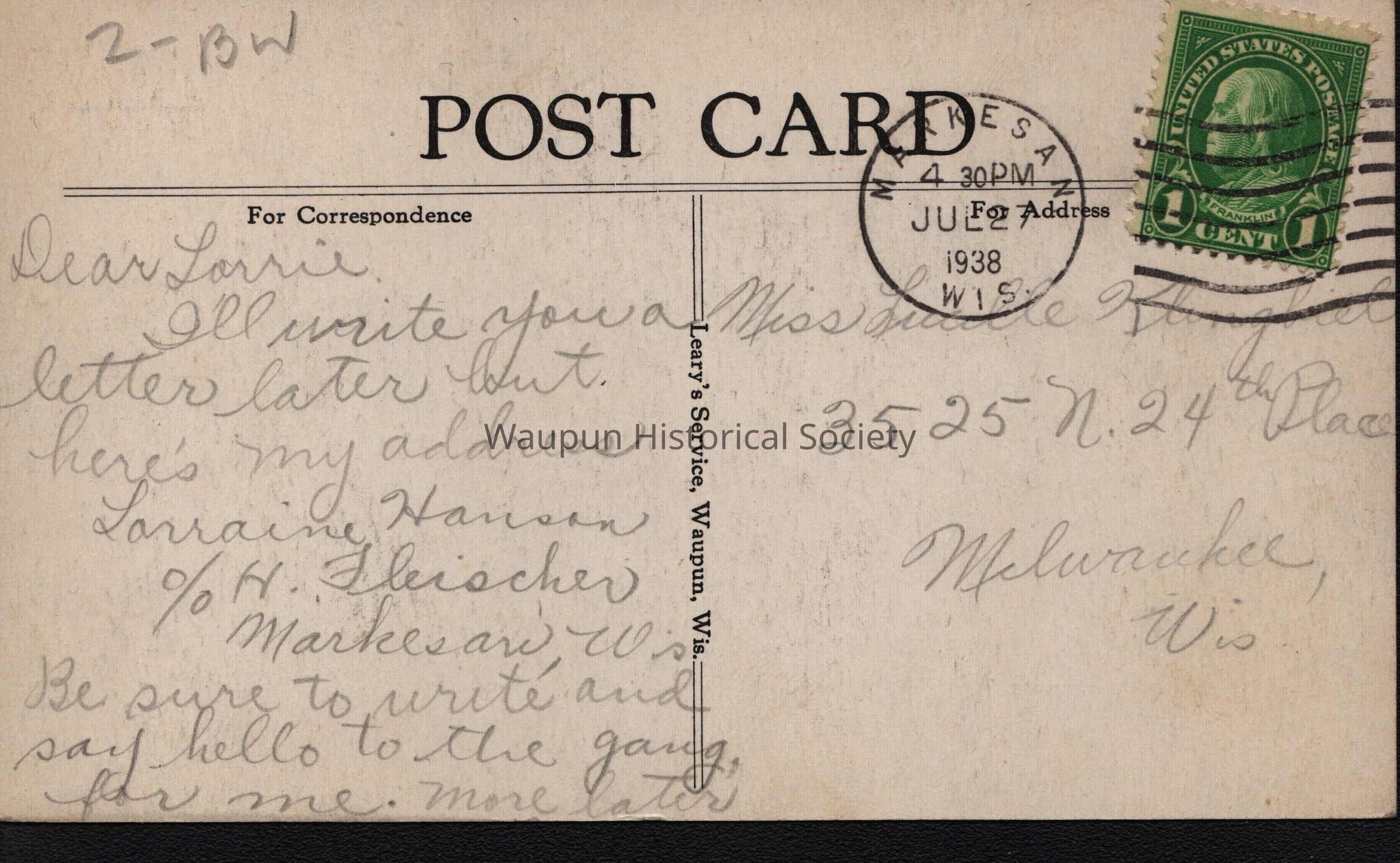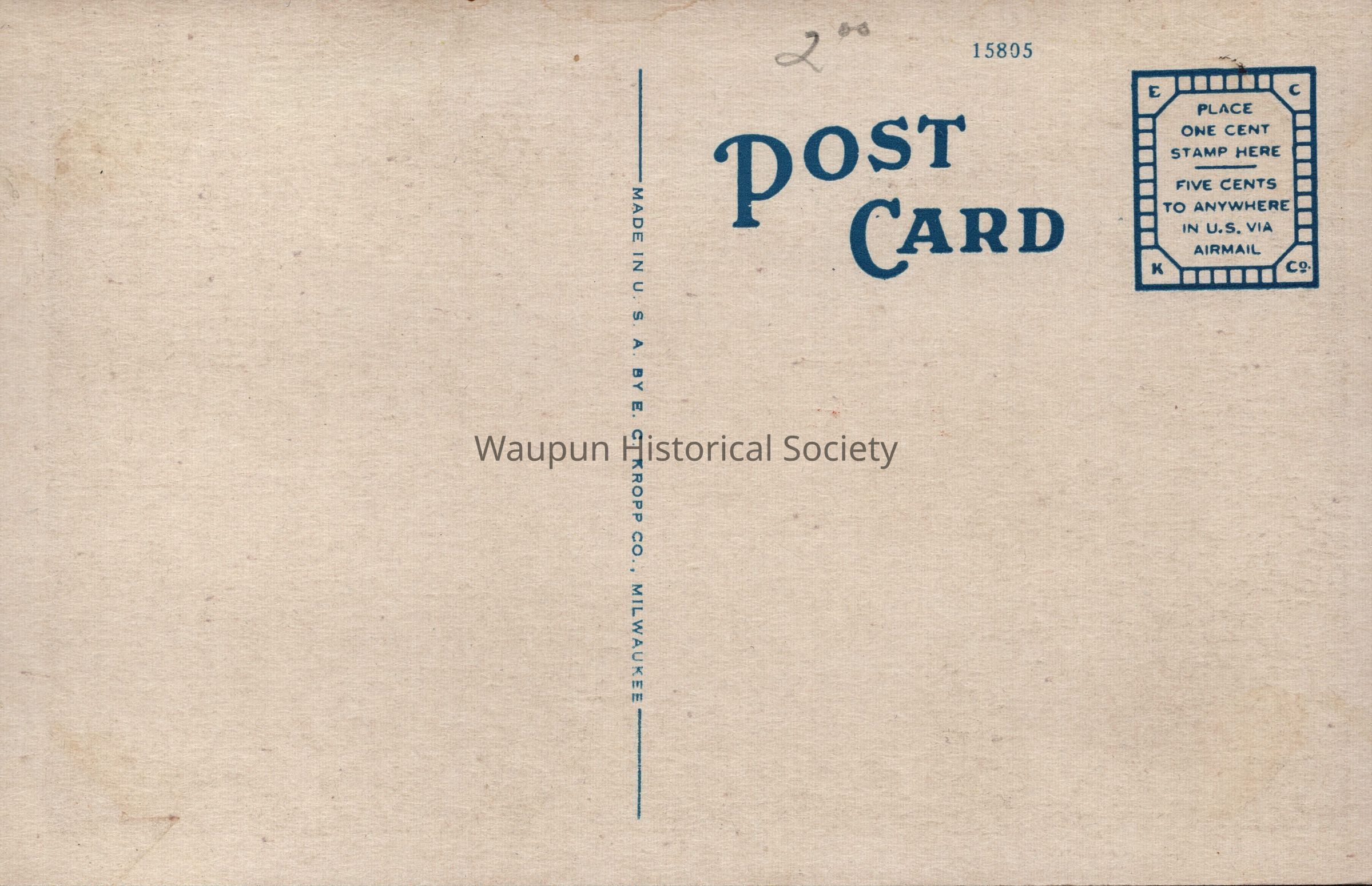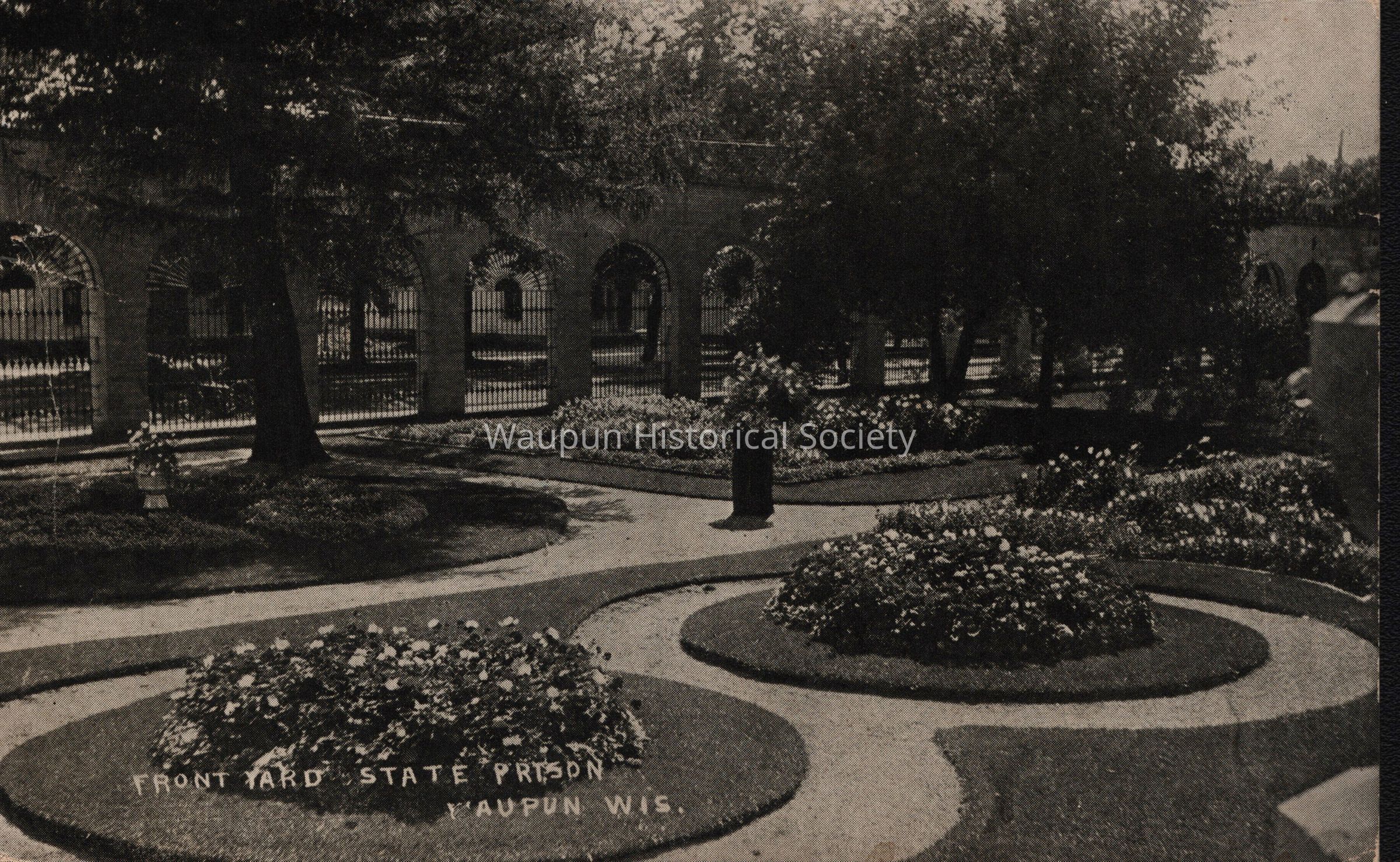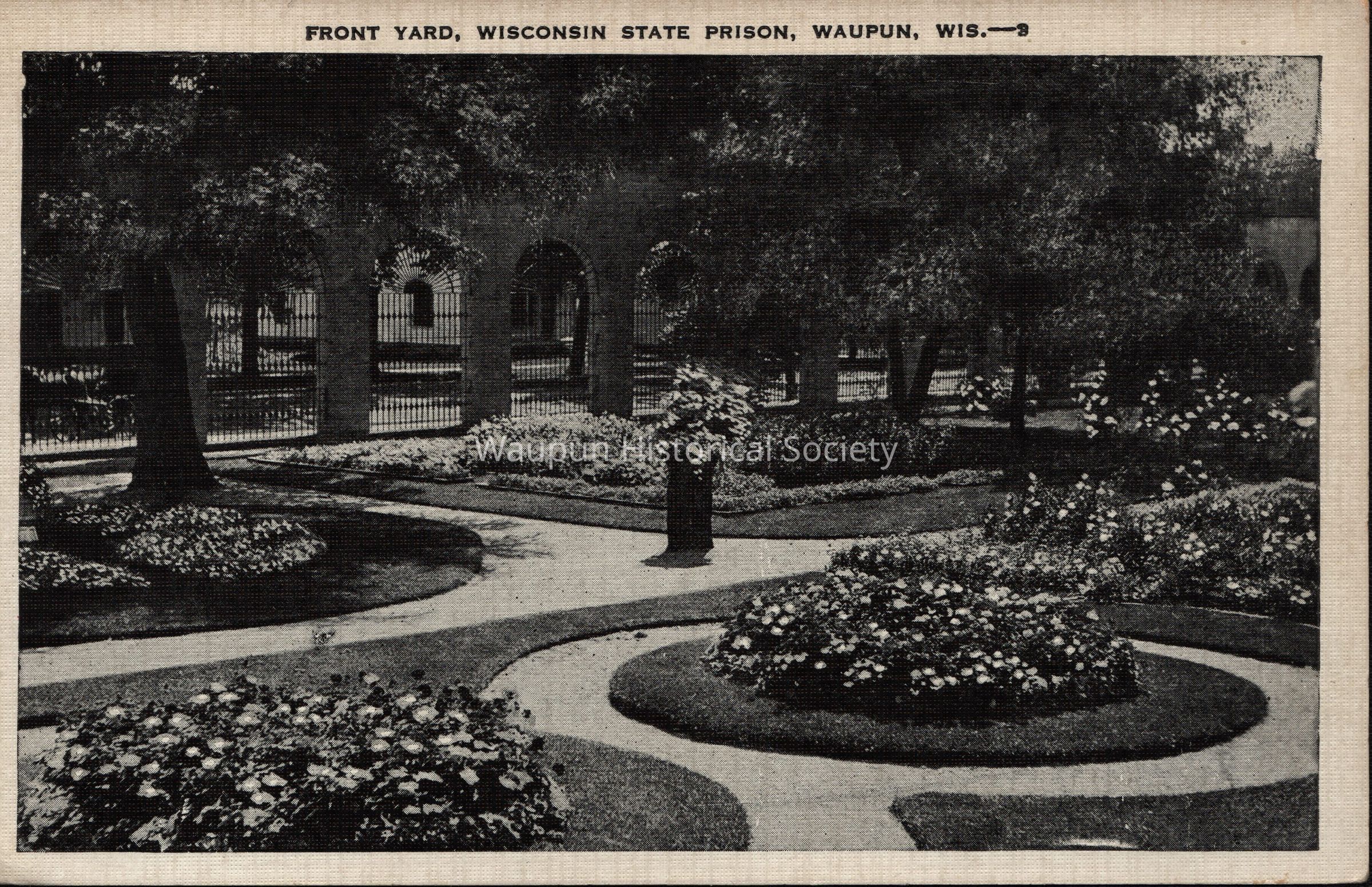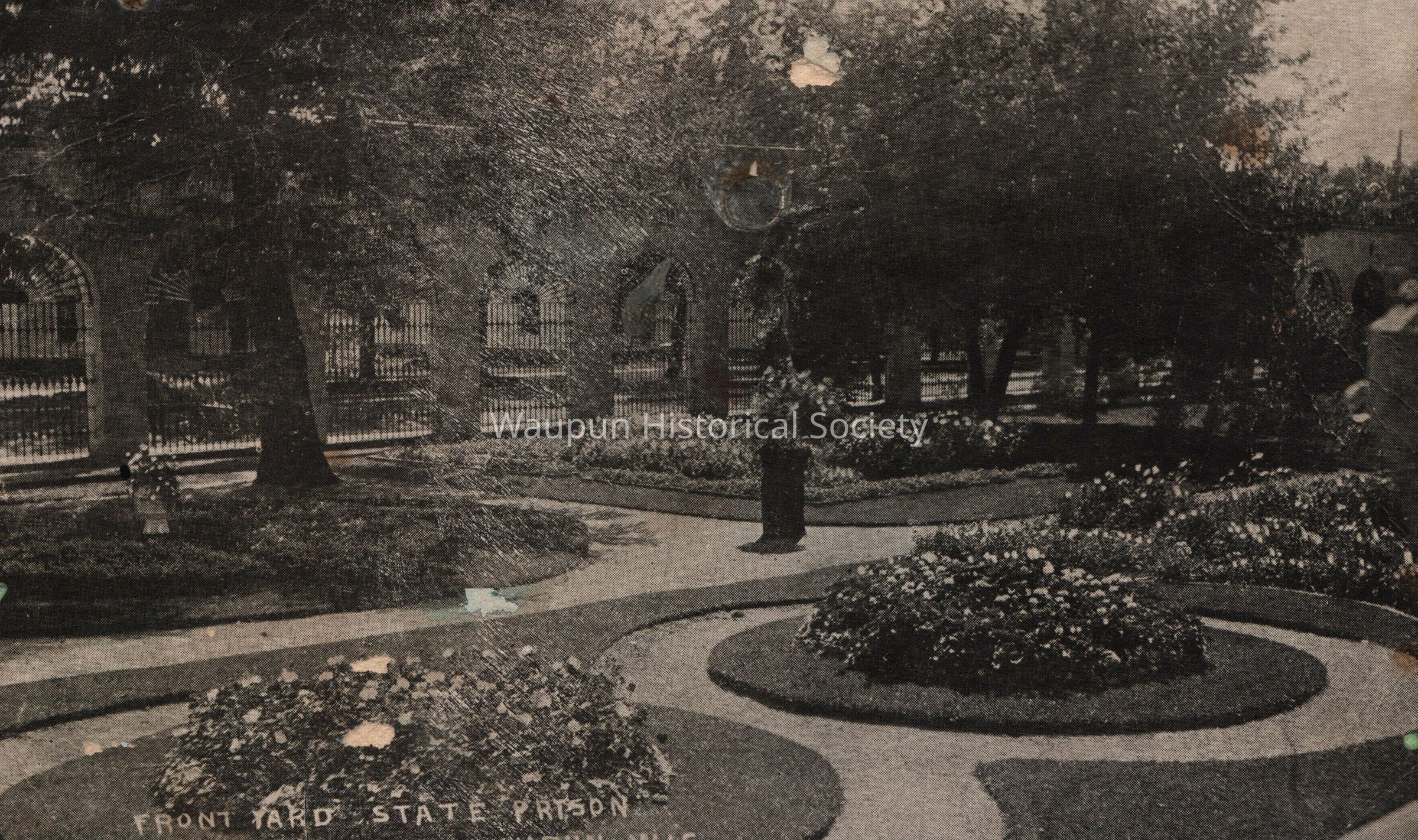 Postcard, Corrections, Wisconsin State Prison, Front Yard. A collection of souvenir postcards, circa 1910 featuring the Waupun State Prison. Unless otherwise noted, these postcards are thought to be taken by Stanley Johnson a local photographer at the time.Acquisition