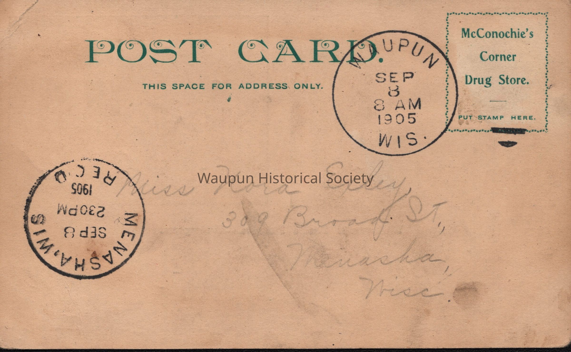 H.B. McConochie Drug store was located at 322 East Main st. in 1910, we can only assume in was located there in 1905.Acquisition
