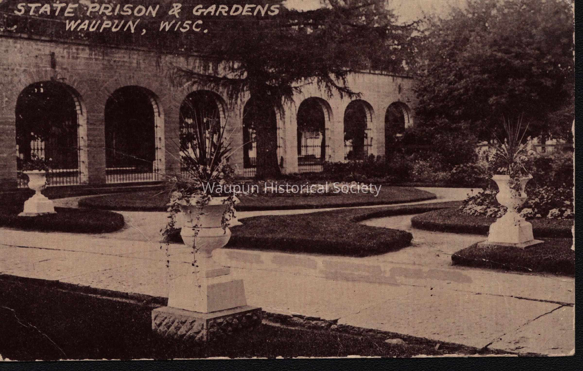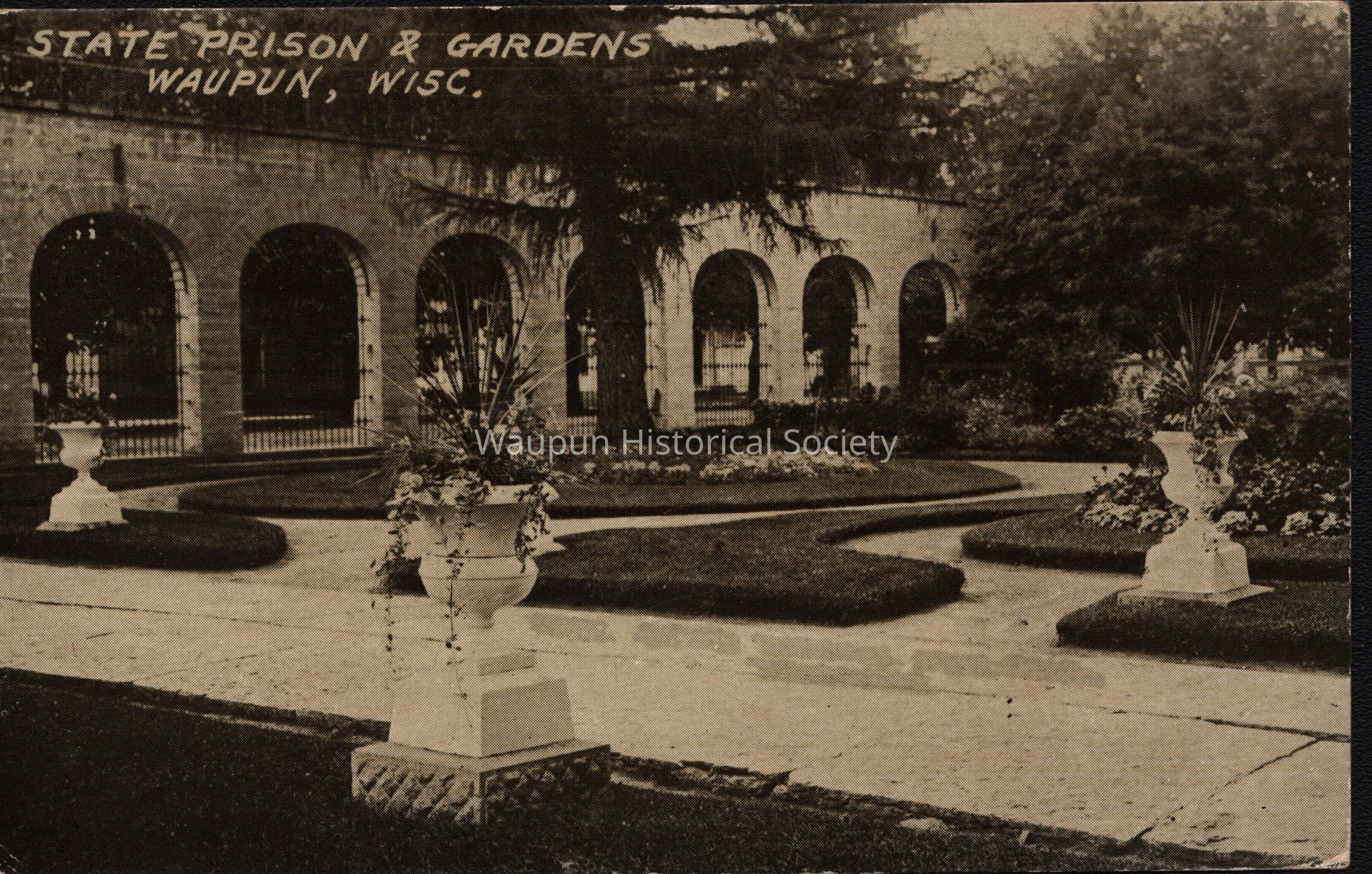 Postcard, Corrections, Wisconsin State Prison, Prison & Gardens. A collection of souvenir postcards, circa 1910 featuring the Waupun State Prison. Unless otherwise noted, these postcards were taken by Stanley Johnson a local photographer at the time.