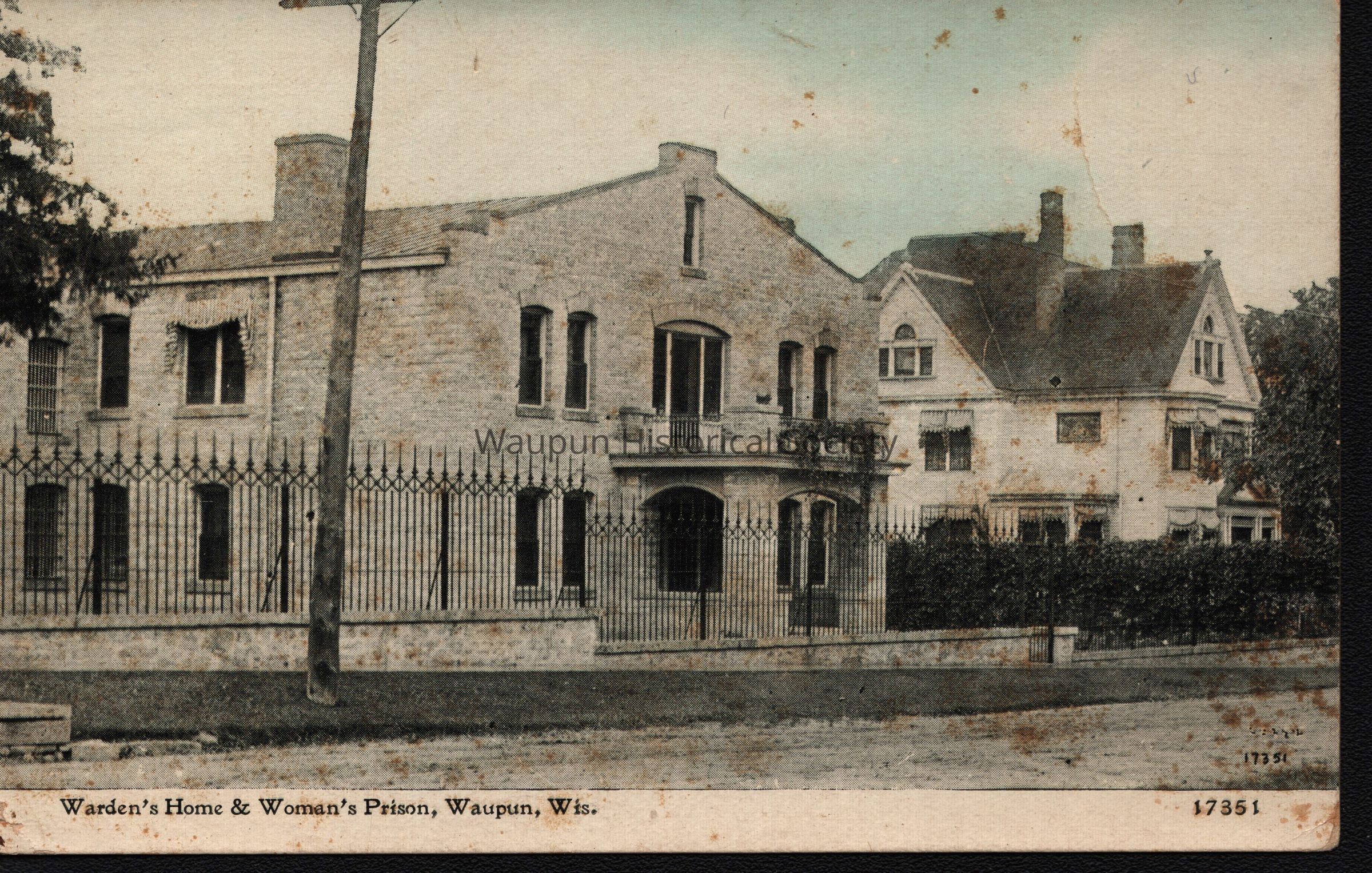 Postcard, Corrections, Wisconsin State Prison, Warden's Home & Women's Prison, #17351. A collection of souvenir postcards, circa 1910 featuring the Waupun State Prison. This postcard was made by the C. U. Williams company of Bloomington, IL.Acquisition
