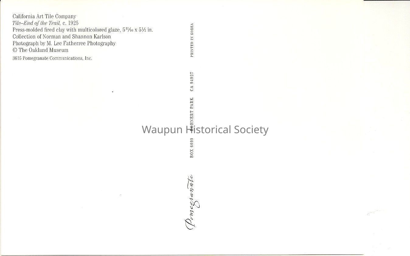 Postcard, End of the Trail, Art TileEntry/Object ID