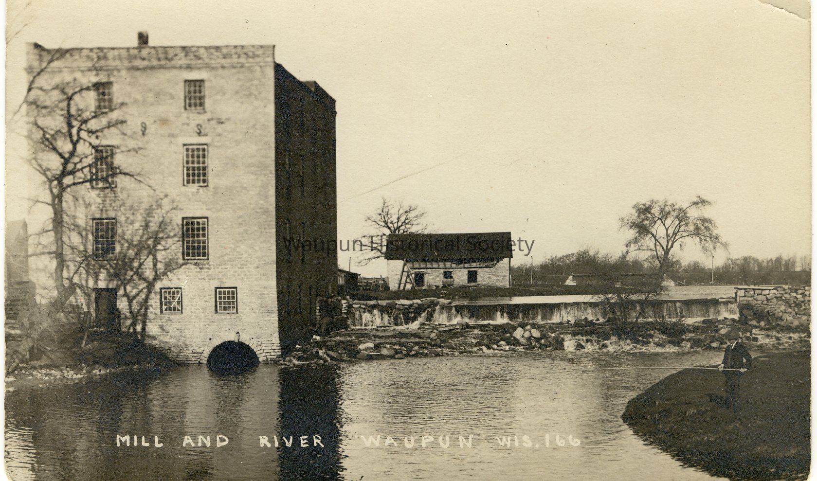 This is a picture postcard taken by Stanley Johnson, circa 1915 of the Mill and River in Waupun, WIAcquisition