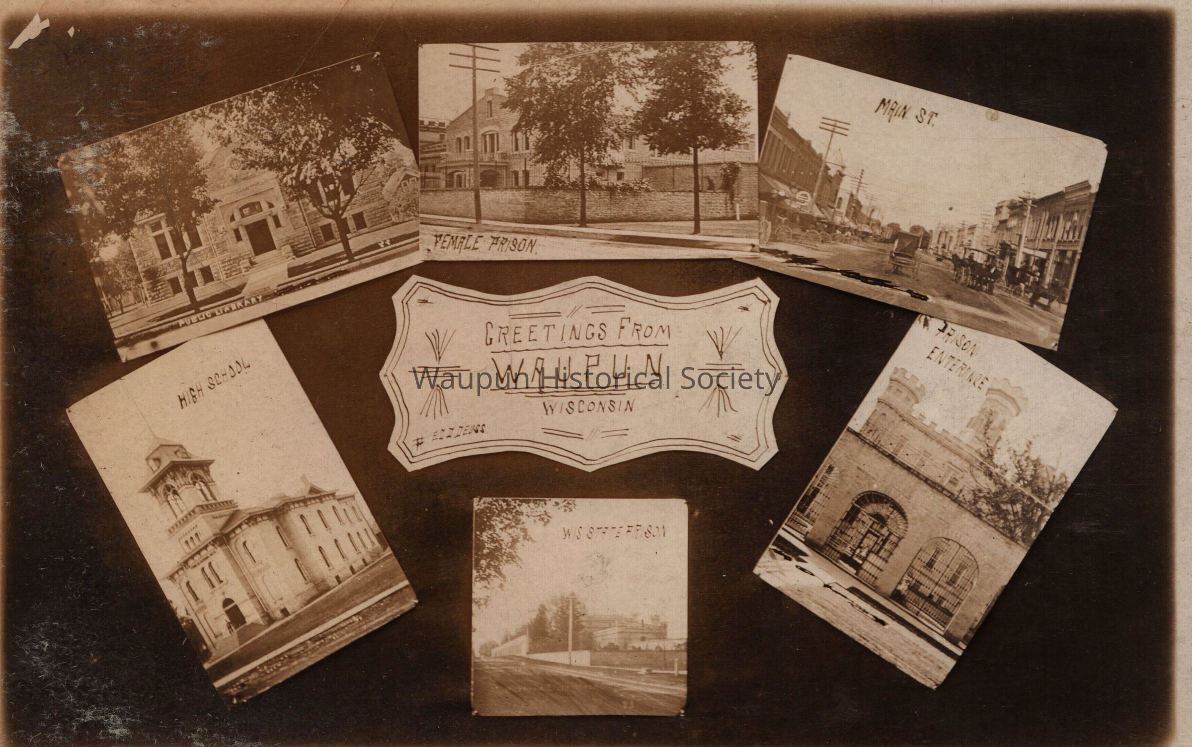 Postcard, Greetings from Waupun, 6 Scenes, 1910