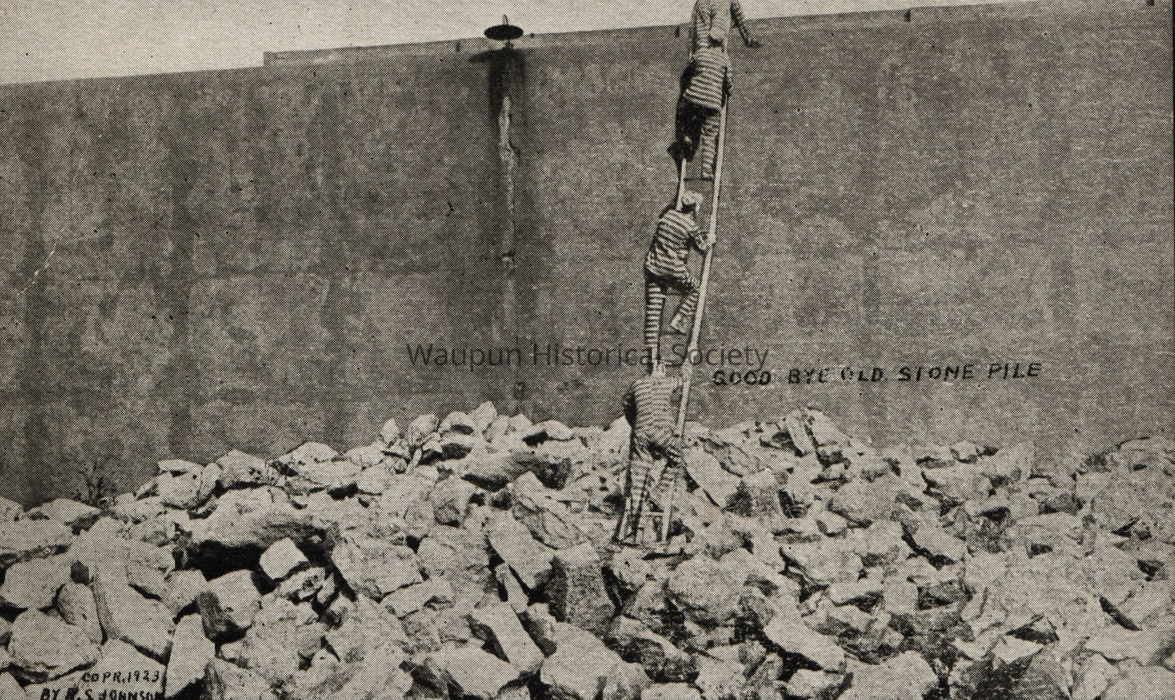 Postcard, Johnson, Prison, Wisconsin Corrections, Good Bye Old Stone Pile