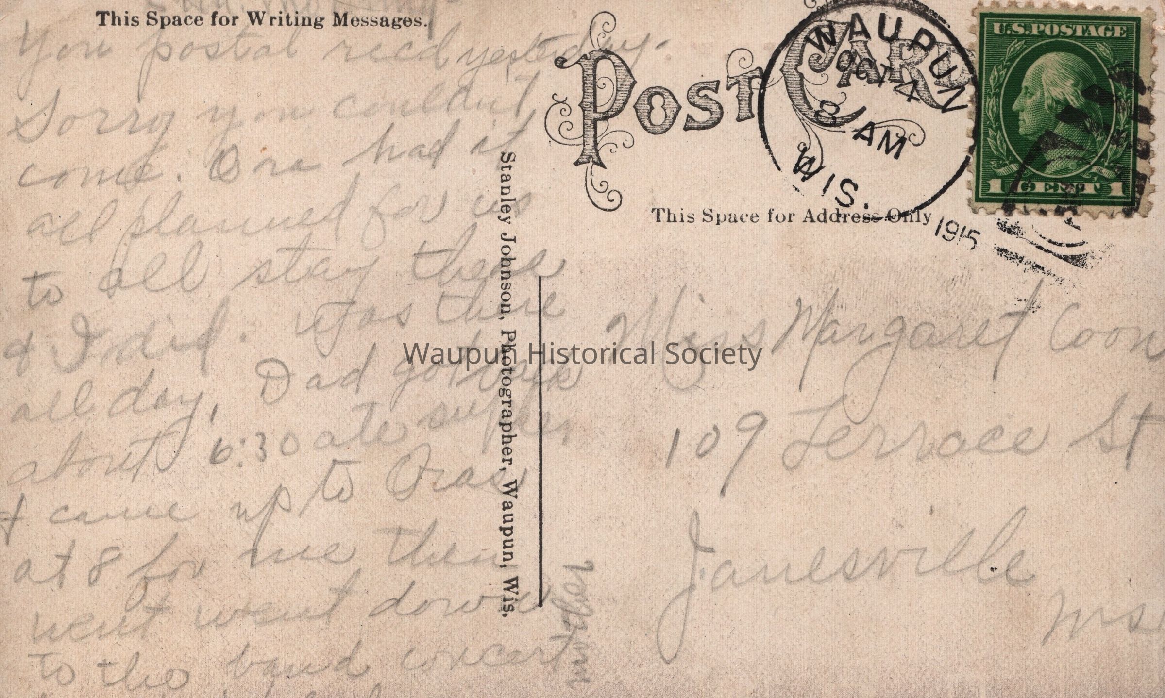 Postcard, Main Street in Waupun looking east.Acquisition