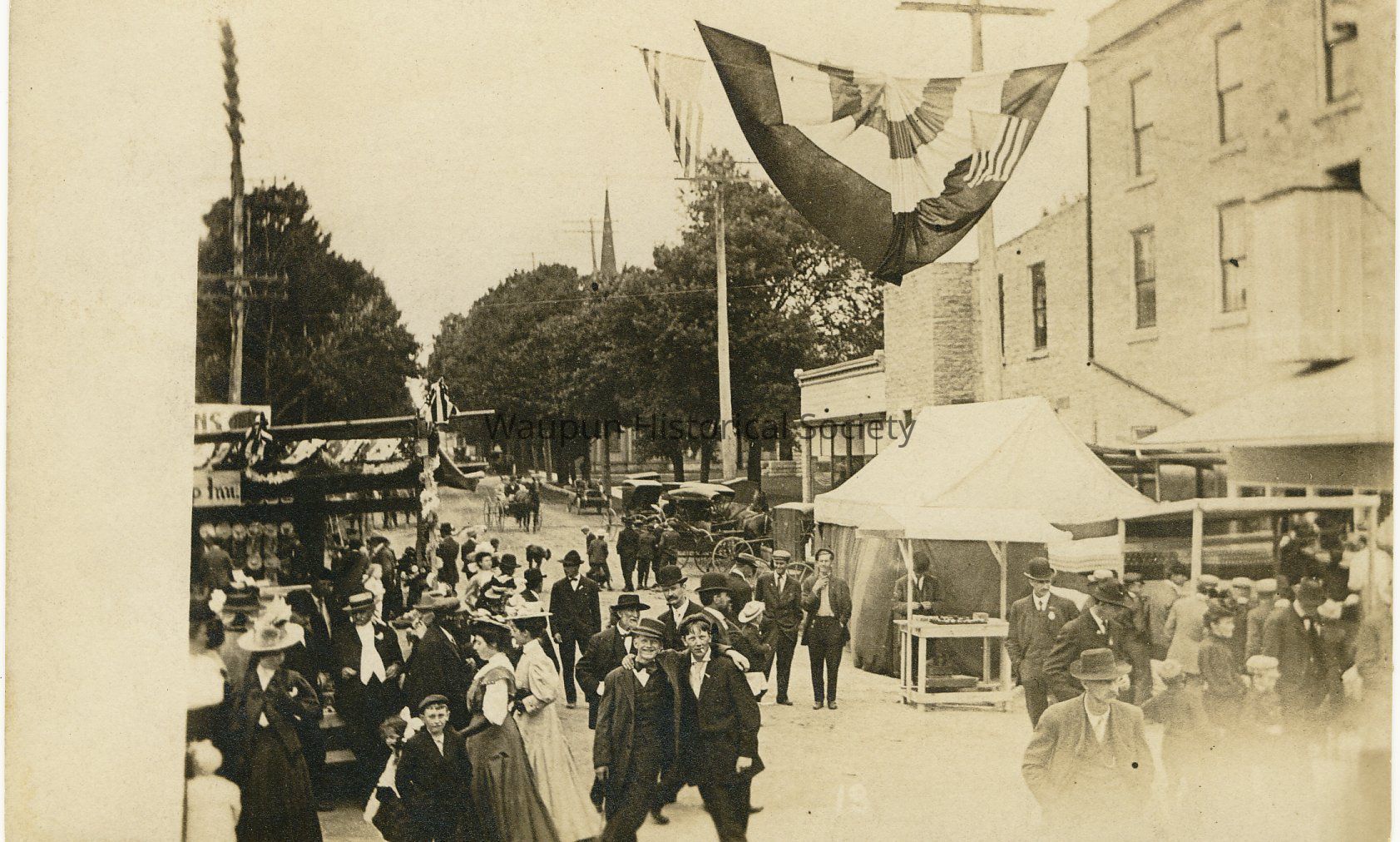 Welcome Home Parade. Parade held to celebrate the Home Coming in July of 1908. On the back of this postcard it reads: "Johnson Post Card Works, Waupun, Wi"
