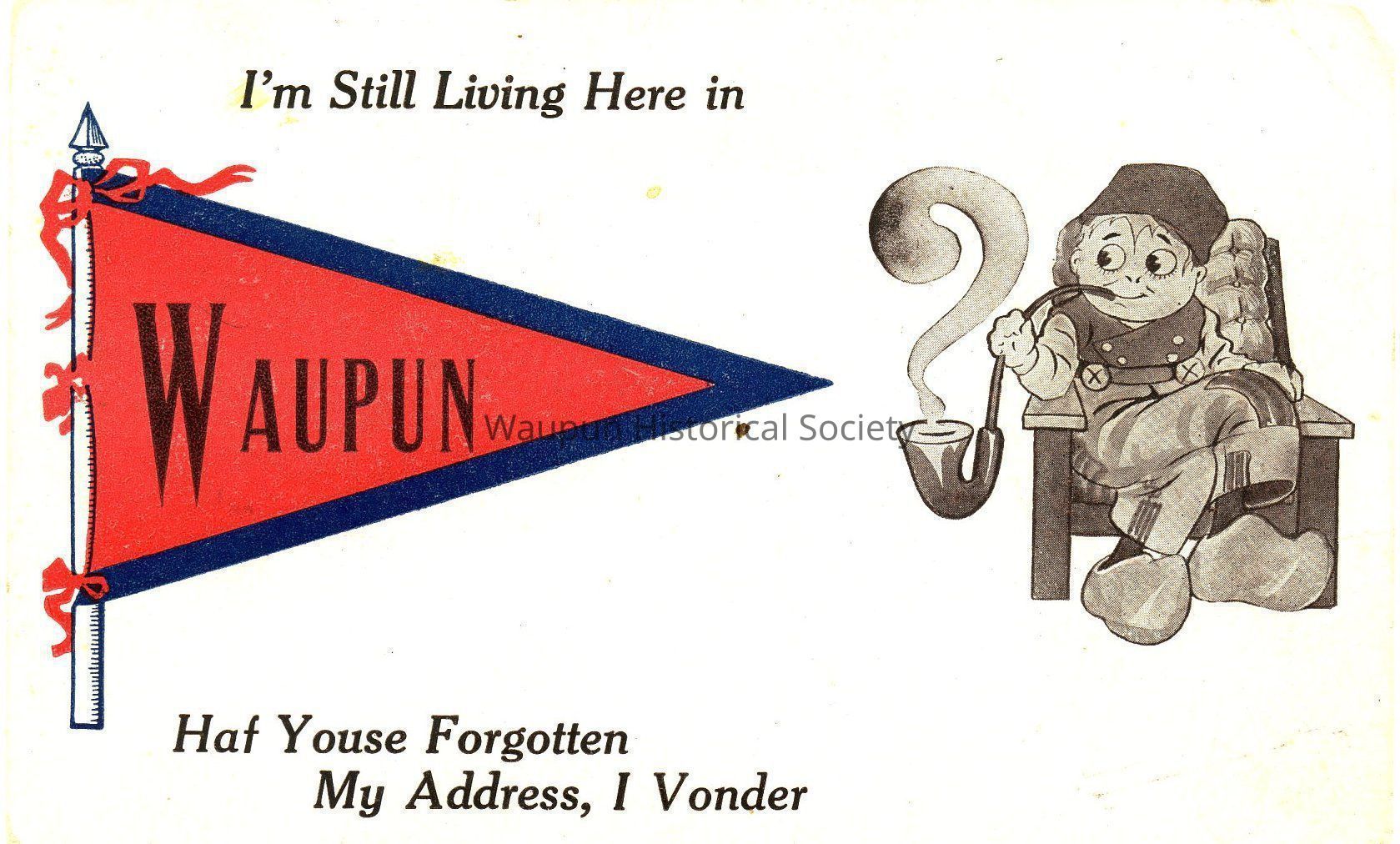 Postcard, Souvenir, Pennant, I'm Still Living Here In Waupun, Haf Youse Forgotten My Address, I VonderEntry/Object ID