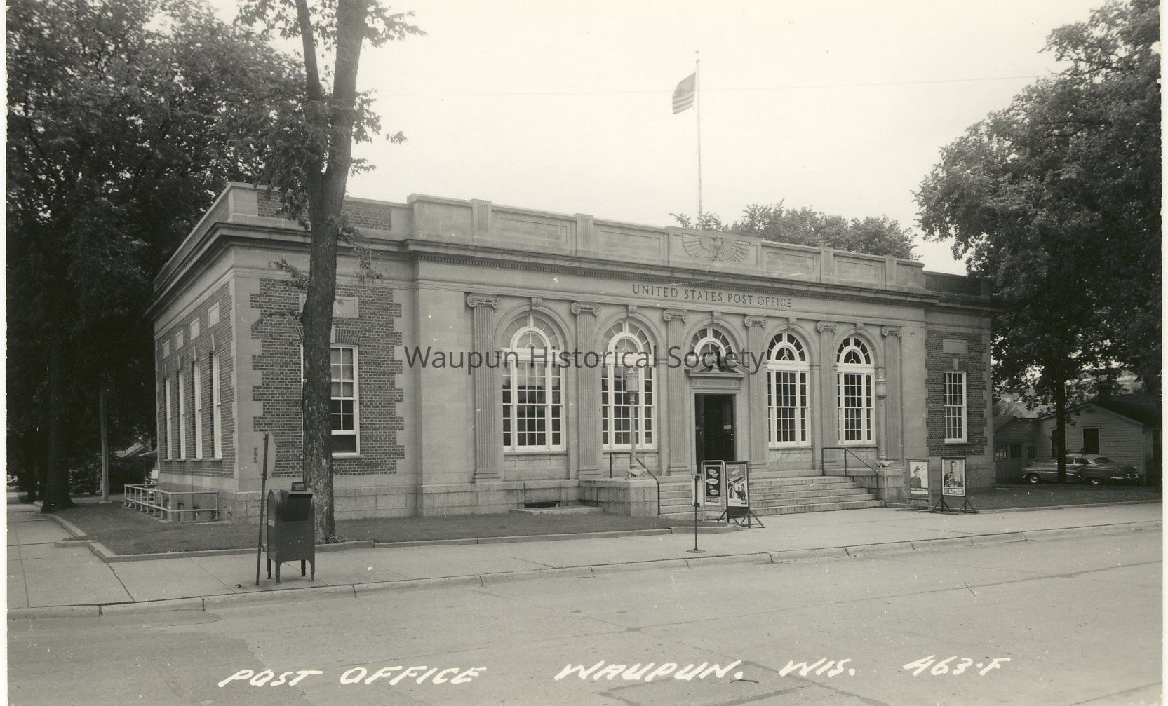 Postcard, Post Office, #463-F. This photo is of the Waupun post office, circa 1960's. Located at 400 E. Franklin Street.Acquisition