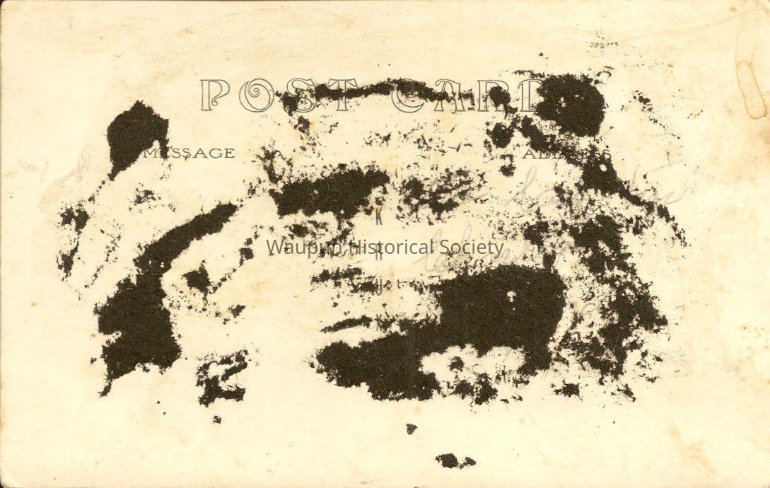 The postcard had been in a photo album or scrap book. The adhesive used, left some of the black page stuck to the correspondence side, obscuring the recipient's name or other message.