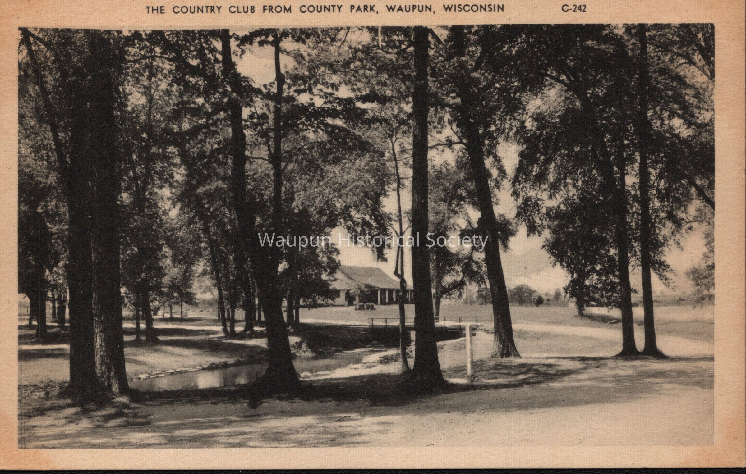 Postcard, Rock River Country Club, #C-242. The Fond du Lac County Park is located at the North West end of Waupun. The park for many years was virgin woods. It contained a band shell and a WPA Project stone work along the river.