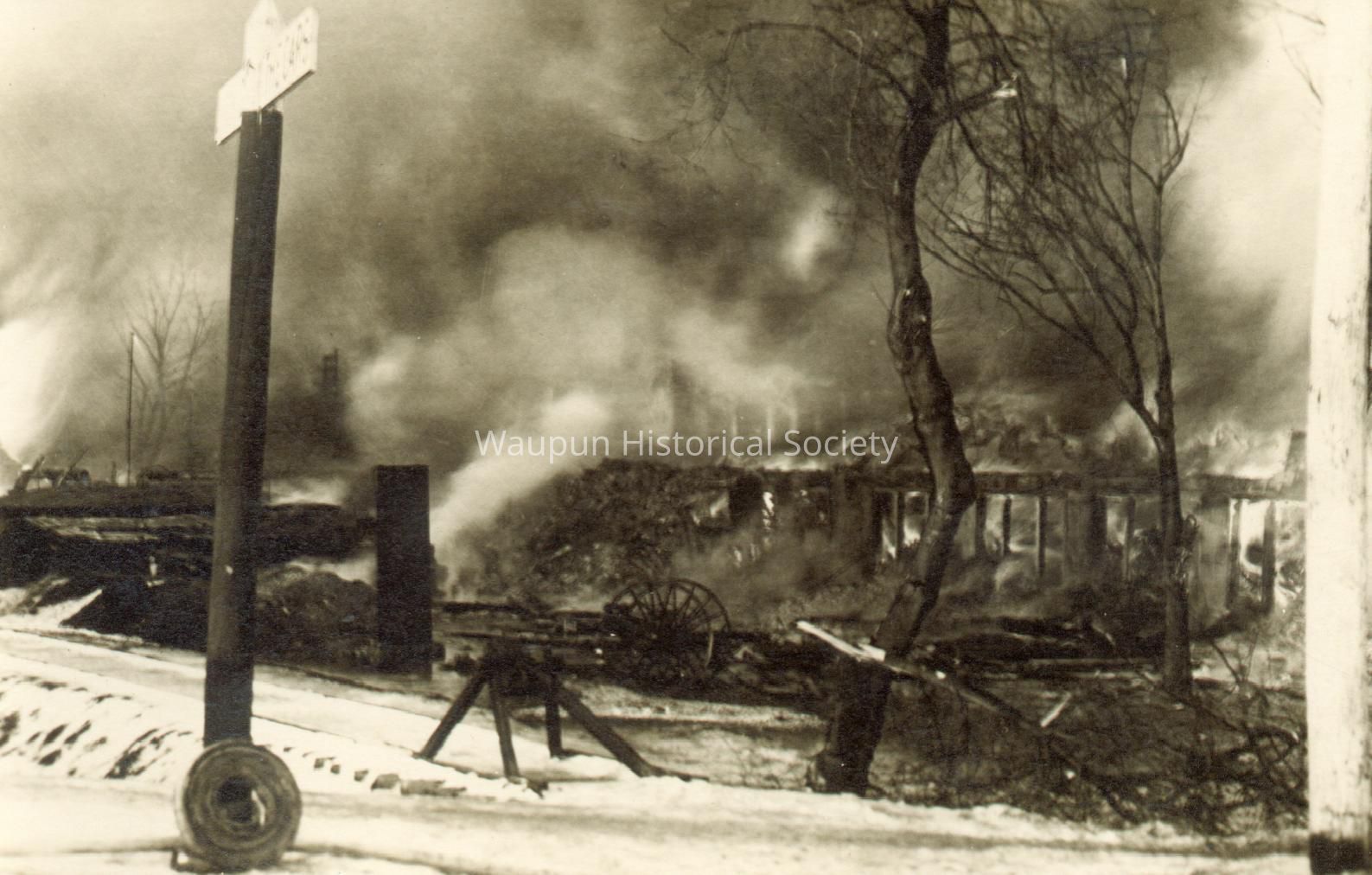 The account goes on to explain the damage done to surrounding buildings. There is also a newspaper account of this fire displayed in the vertical display upstairs in the Waupun Heritage Museum.