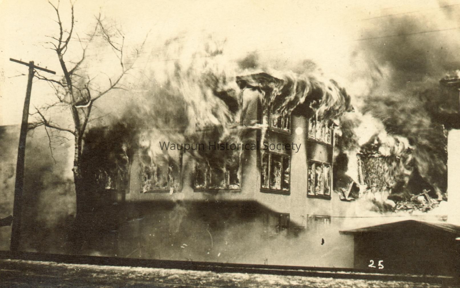The account goes on to explain the damage done to surrounding buildings. There is also a newspaper account of this fire displayed in the vertical display upstairs in the Waupun Heritage Museum.