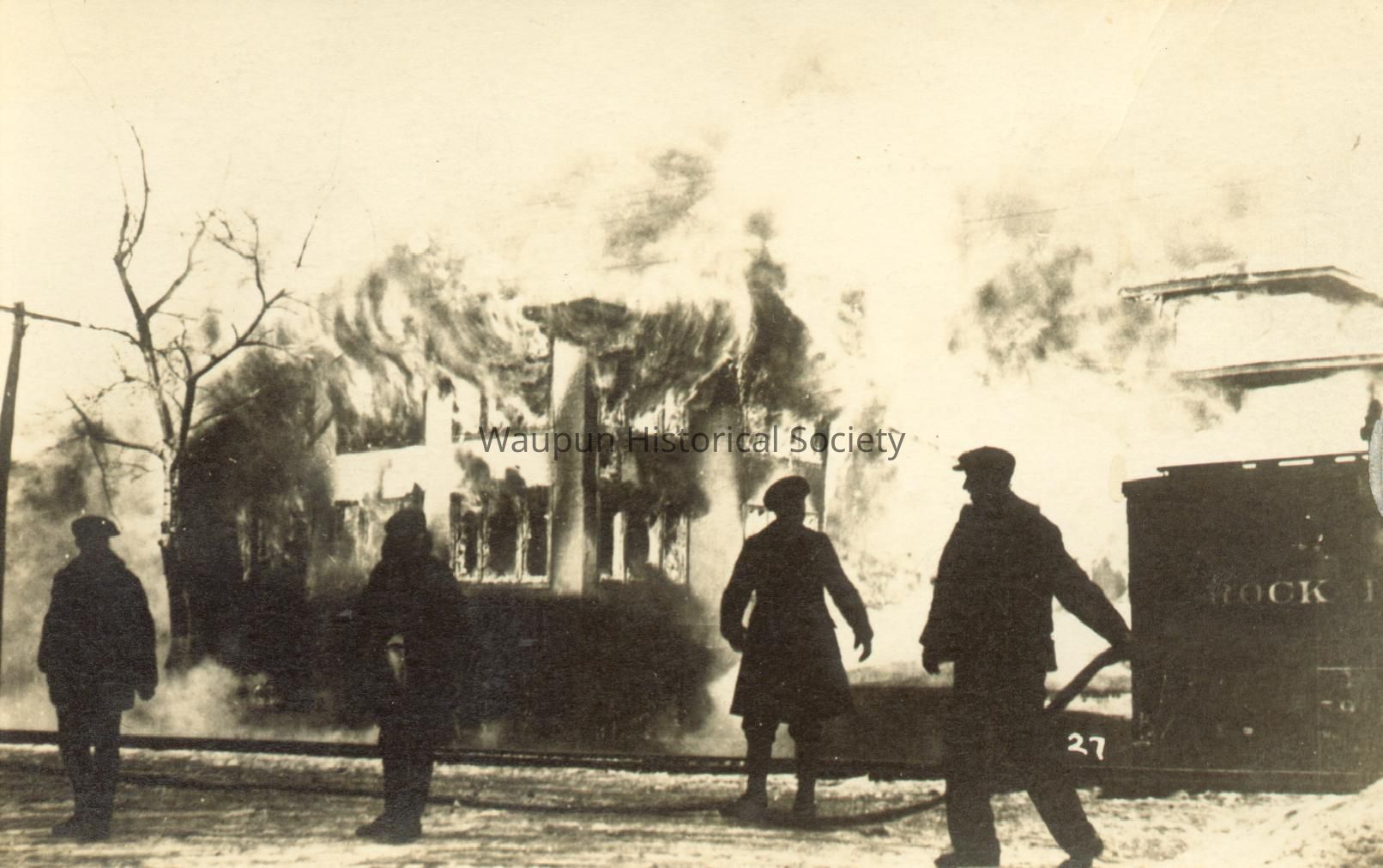 The account goes on to explain the damage done to surrounding buildings. There is also a newspaper account of this fire displayed in the vertical display upstairs in the Waupun Heritage Museum.