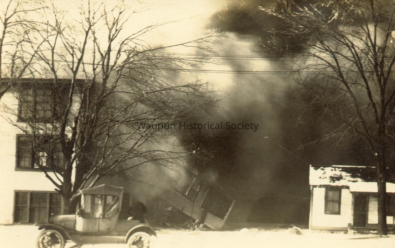 The account goes on to explain the damage done to surrounding buildings. There is also a newspaper account of this fire displayed in the vertical display upstairs in the Waupun Heritage Museum.