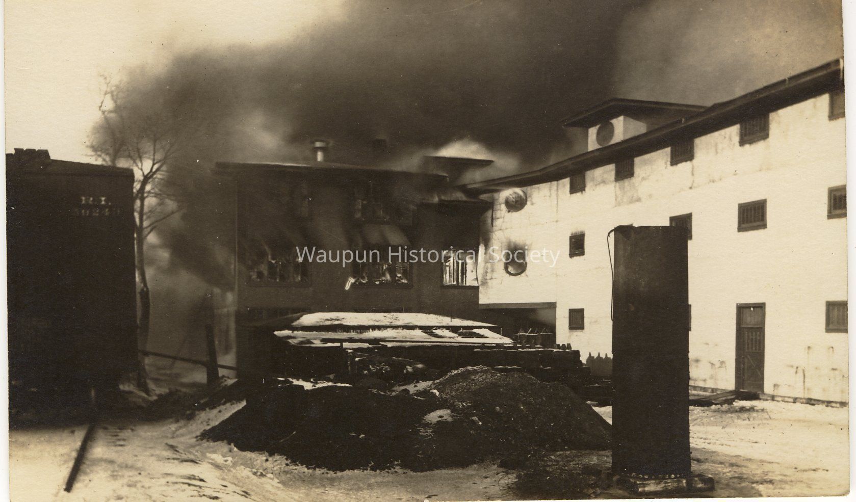 Aftermath of the C.A. Shaler Company Fire. One of 13 Black & White picture postcards showing the aftermath of the March 2, 1922 Shaler Co. fire. The fire which struck at about 4:15 p.m. completely destroyed the buildings and most of the machinery and took the lives of three women employees. The victims were Bessie Koekoek, Mrs. Howard Carney, and Mrs. Emma Michels. The fire caused an estimated loss of over a half a million dollars to the Shaler Co. and another $20,000 to the Althouse-Wheeler Co.; $4000 to the neighboring Beucus home, and still another $5000 in other loses.Acquisition
