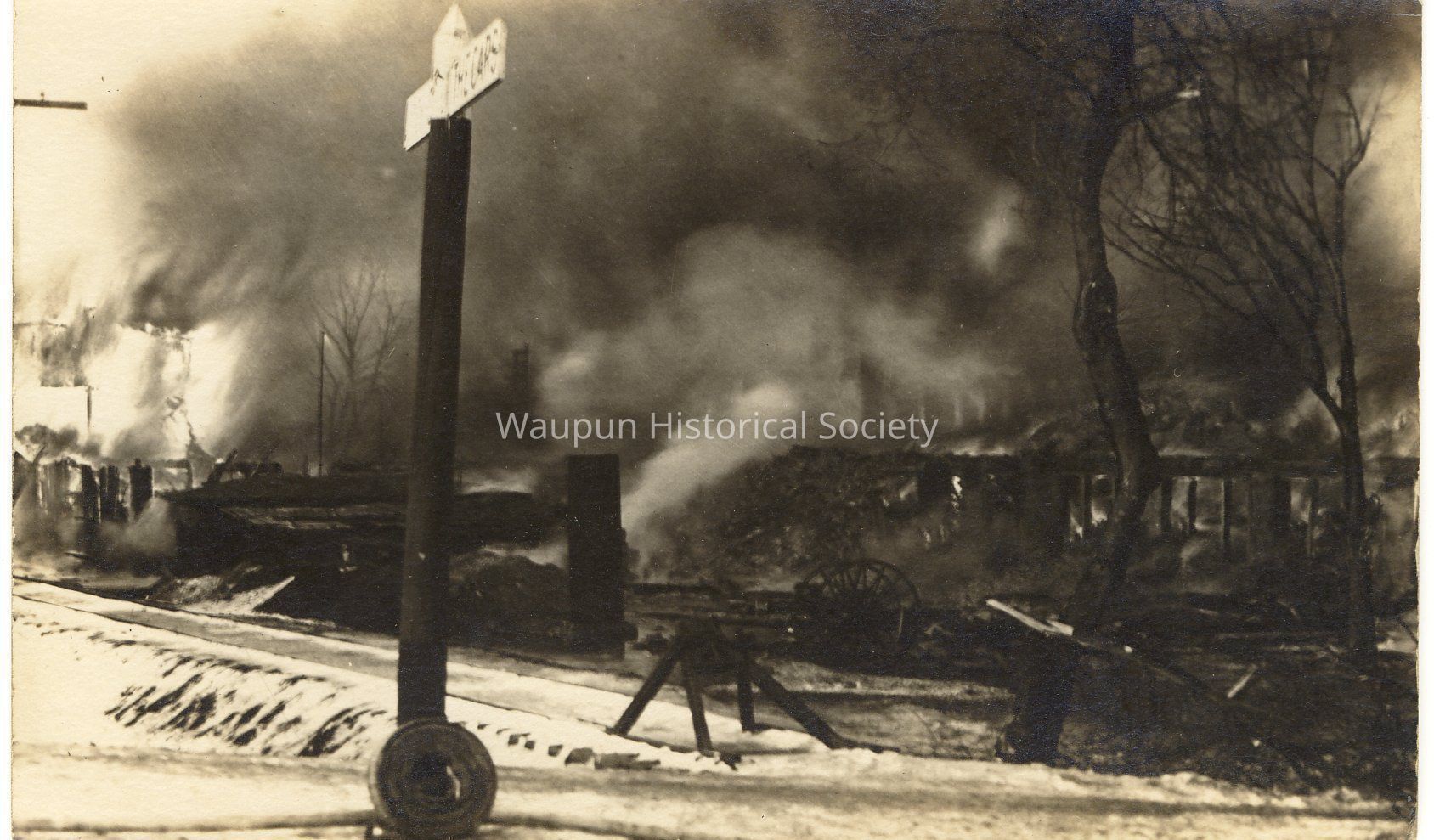 Aftermath of the C.A. Shaler Company Fire. One of 13 Black & White picture postcards showing the aftermath of the March 2, 1922 Shaler Co. fire. The fire which struck at about 4:15 p.m. completely destroyed the buildings and most of the machinery and took the lives of three women employees. The victims were Bessie Koekoek, Mrs. Howard Carney, and Mrs. Emma Michels. The fire caused an estimated loss of over a half a million dollars to the Shaler Co. and another $20,000 to the Althouse-Wheeler Co.; $4000 to the neighboring Beucus home, and still another $5000 in other loses.Acquisition
