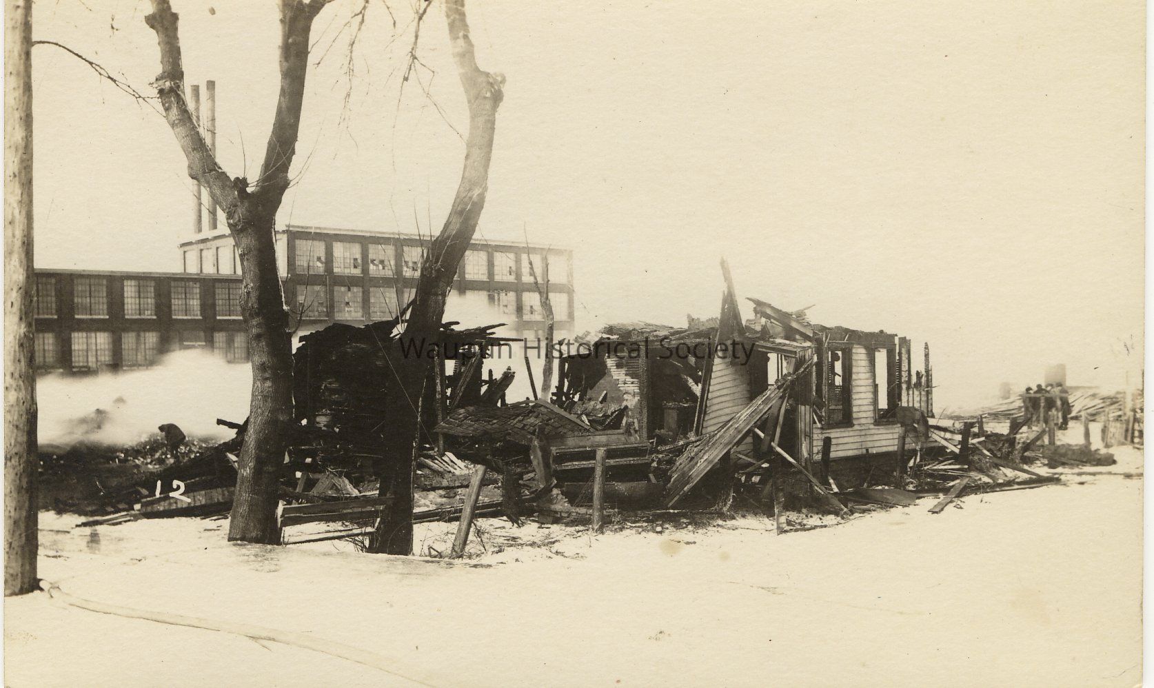 Aftermath of the C.A. Shaler Company Fire. One of 13 Black & White picture postcards showing the aftermath of the March 2, 1922 Shaler Co. fire. The fire which struck at about 4:15 p.m. completely destroyed the buildings and most of the machinery and took the lives of three women employees. The victims were Bessie Koekoek, Mrs. Howard Carney, and Mrs. Emma Michels. The fire caused an estimated loss of over a half a million dollars to the Shaler Co. and another $20,000 to the Althouse-Wheeler Co.; $4000 to the neighboring Beucus home, and still another $5000 in other loses.Acquisition