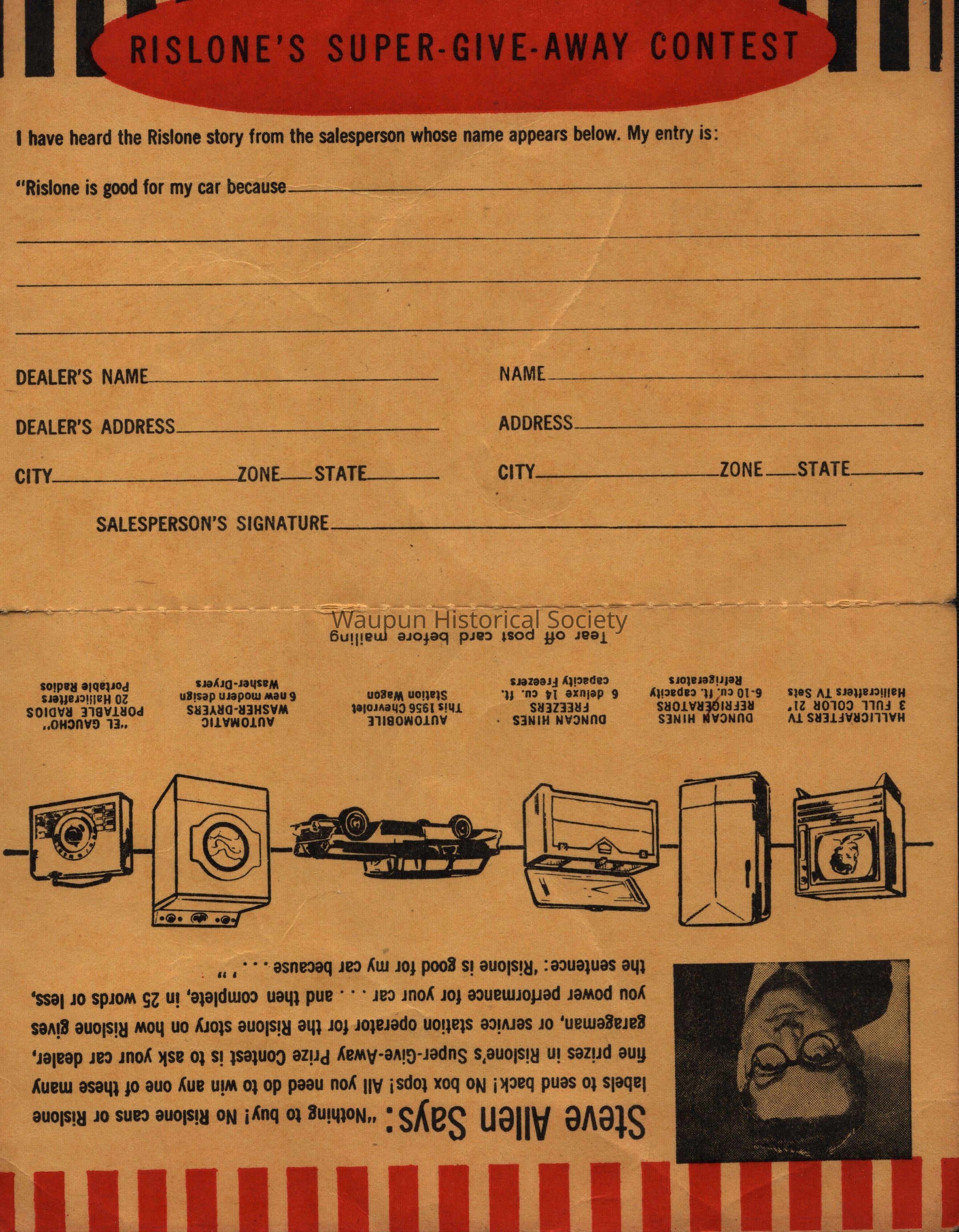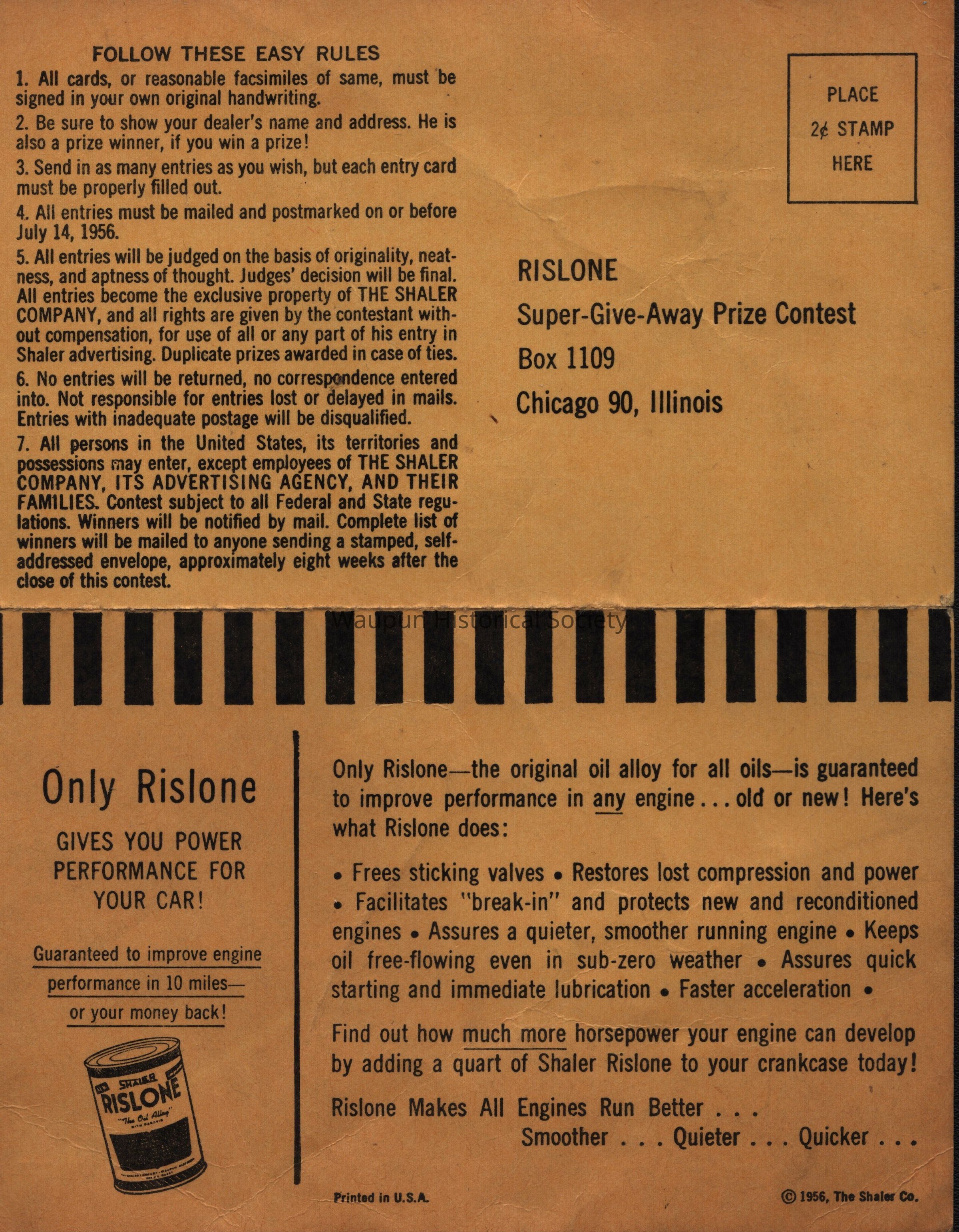 Postcard, Shaler, Rislone's Super-Give-Away Contest