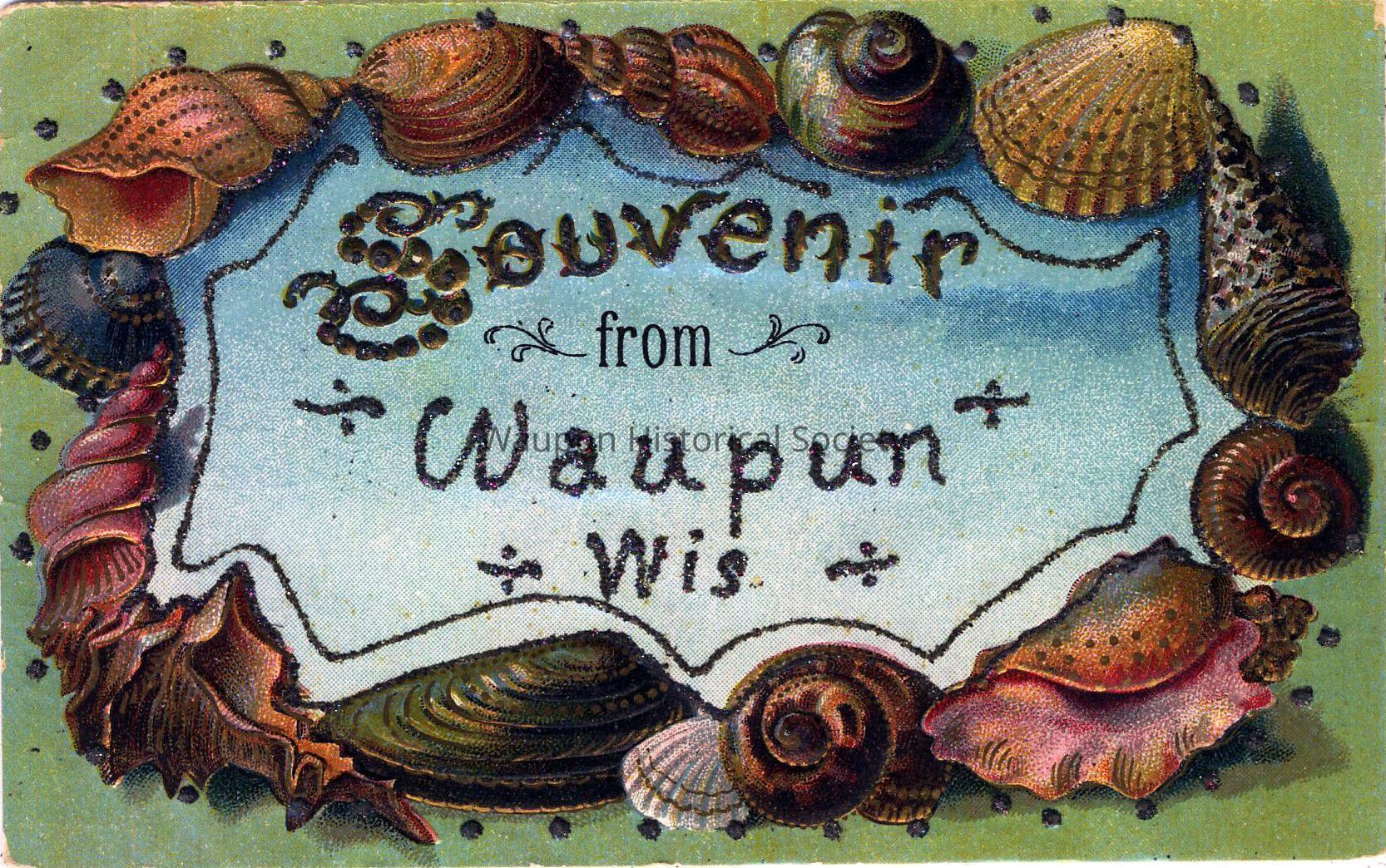 Postcard, Souvenir from Waupun, Glitter Cards.
