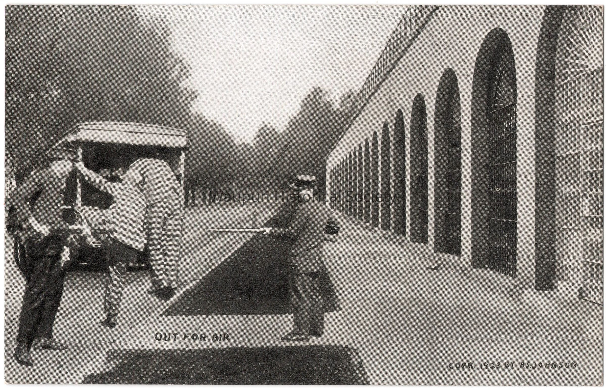 Credit James "Skip" Brown for (6) Johnson prison postcards featuring inmates in striped uniforms.
