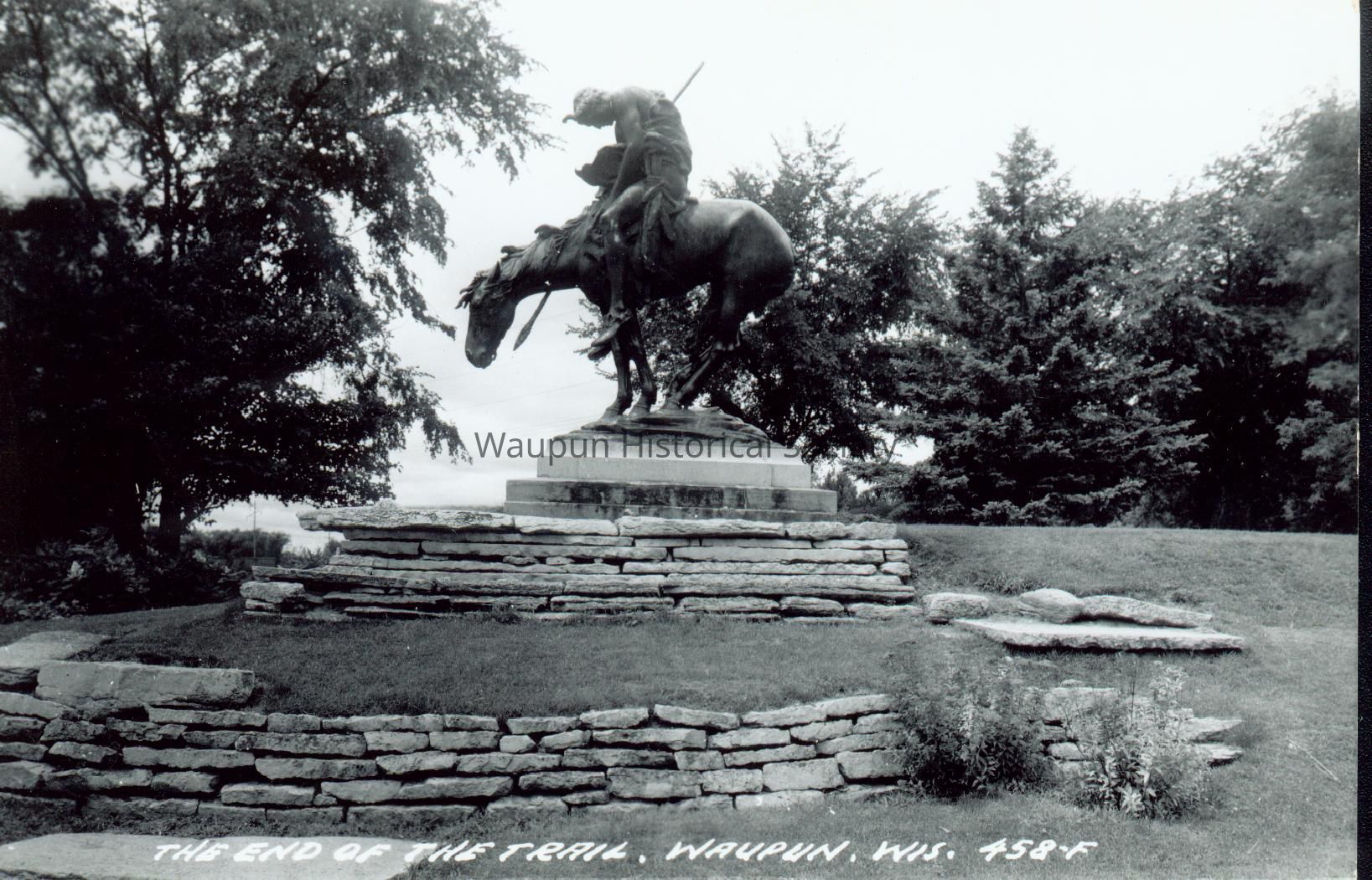 Picture of "The End of the Trail" statue. This statue was given to the city by Clarence Shaler. The statue was created by James Earle Fraser (1876-1953). The statue was dedicated in Waupun on June 23, 1929.Acquisition