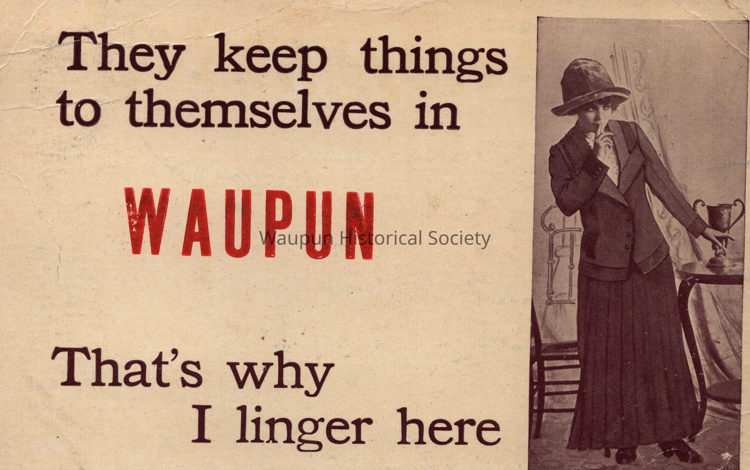 Postcard, Souvenir, They Keep Things to Themselves in Waupun, That's Why I Linger HereEntry/Object ID