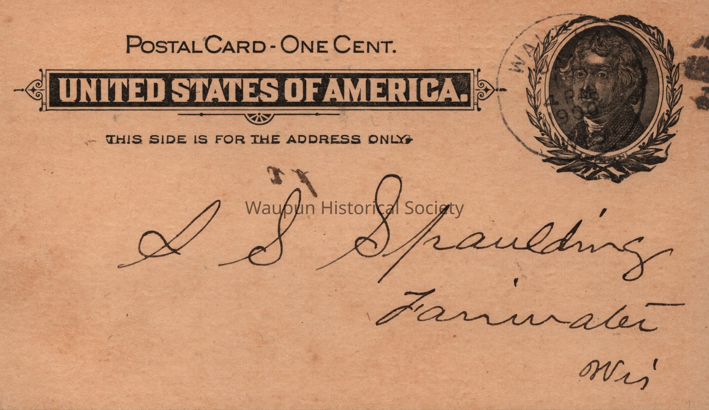Postcard, Waupun Farmers' Mutual Insurance Company, Year Ending December 31, 1899Acquisition