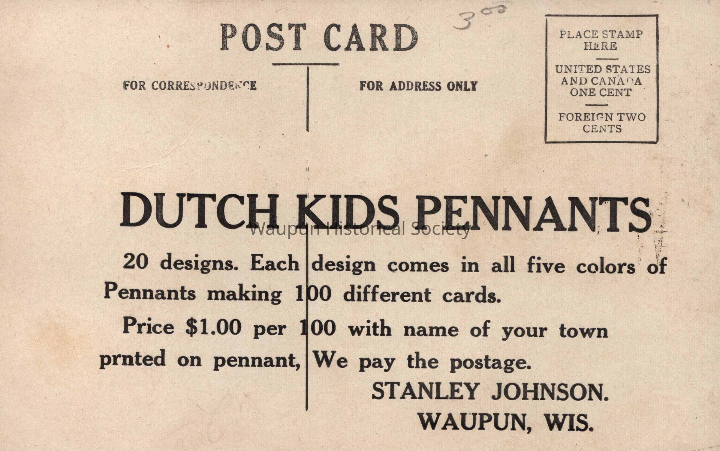 Postcard, Waupun, I Shed Much Tears, Already, Dutch Kids Pennant, Ven Your Ledder Did Not Kum to, Stanley JohnsonAcquisition