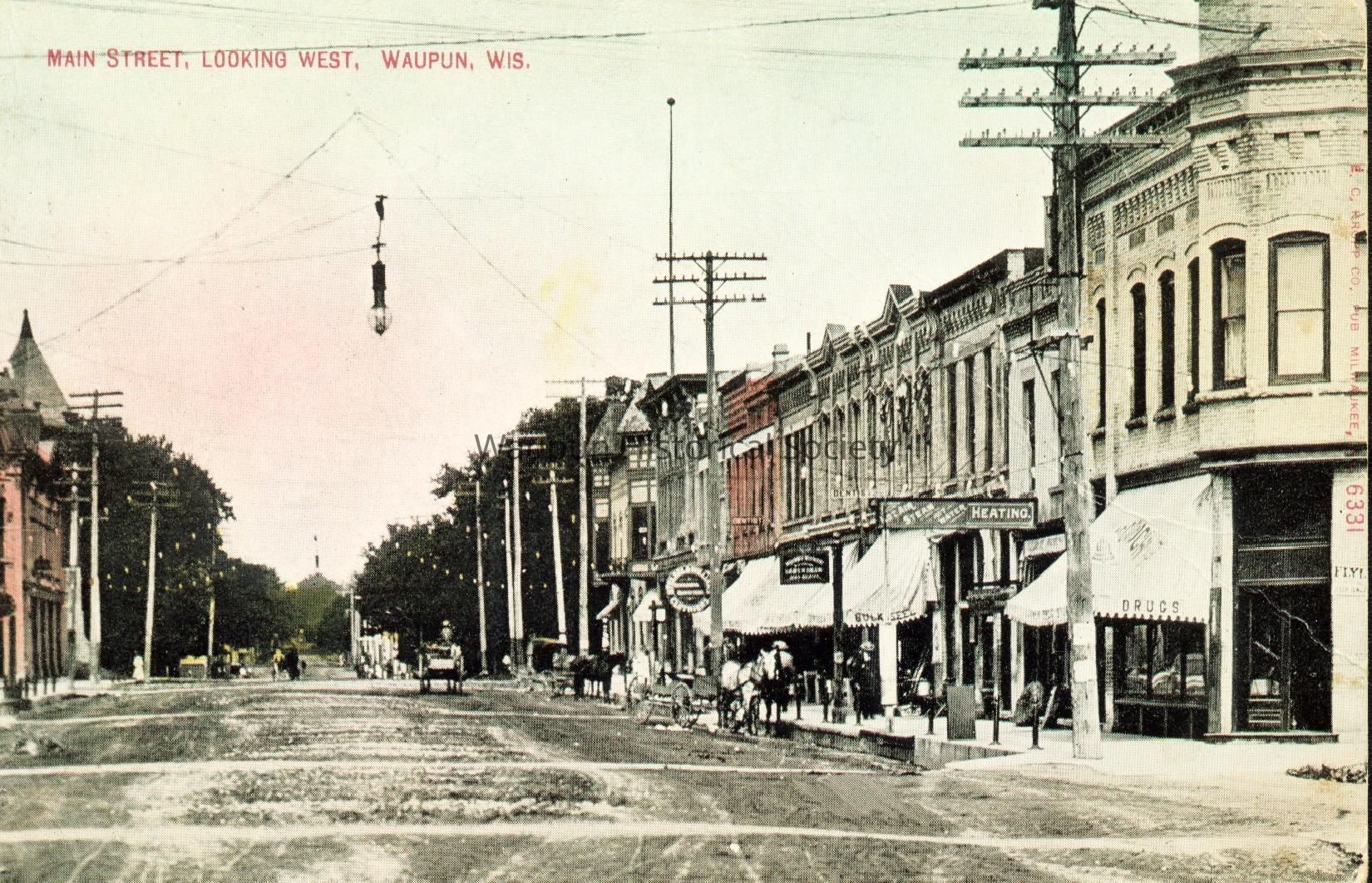 Postcard, Main Street Waupun, Looking West.
