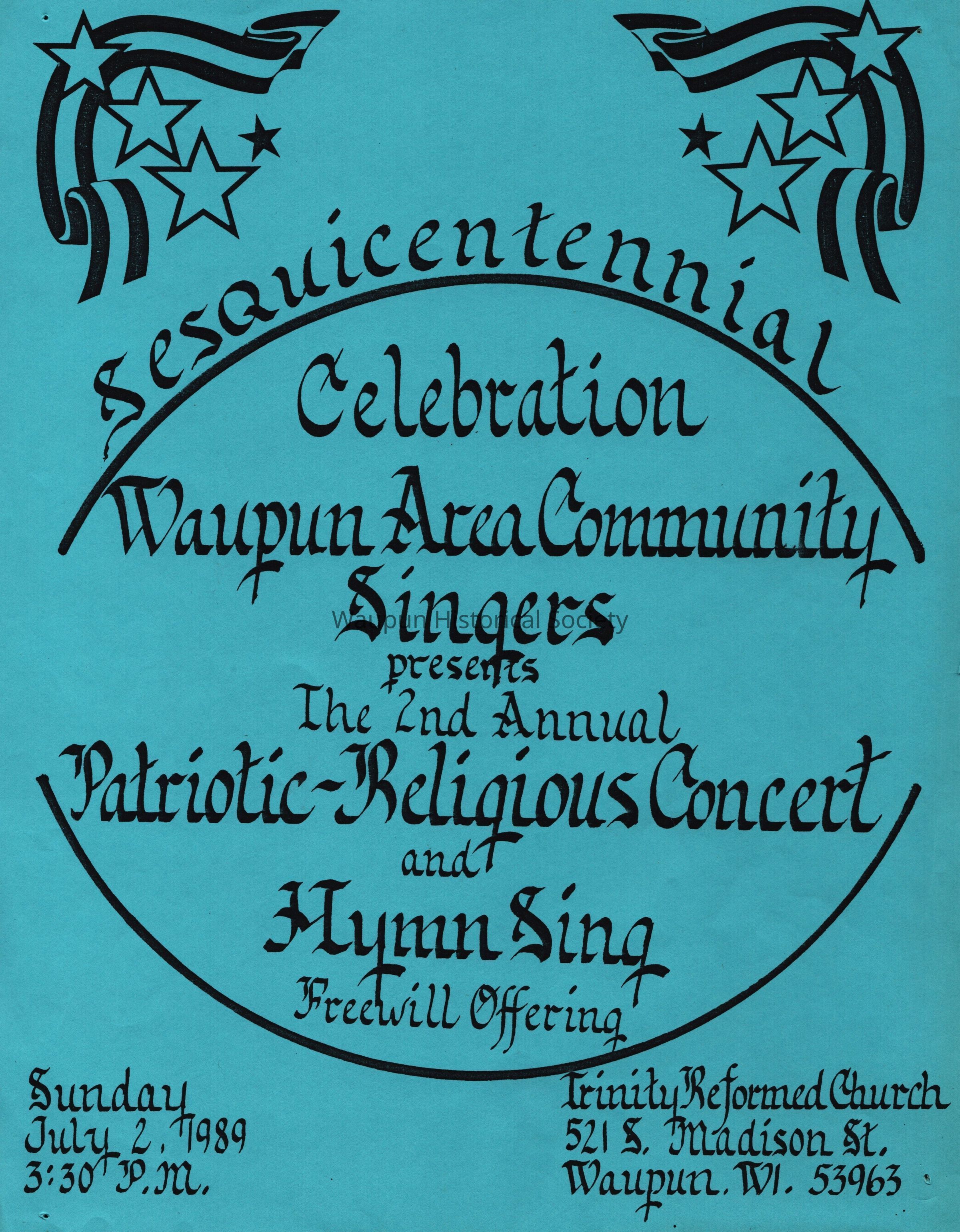 Poster, Sesquicentennial, Patriotic - Religious Concert and Hymn Sing, 150th AnniversaryEntry/Object ID