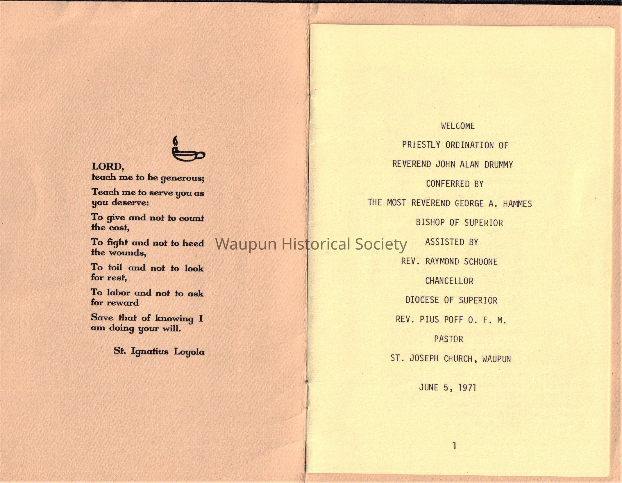 Priestly Ordination of Reverend John Alan Drummy -ST. Joseph Church,Waupun (June 5 1971)Acquisition