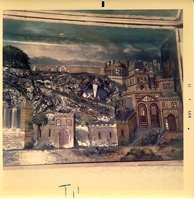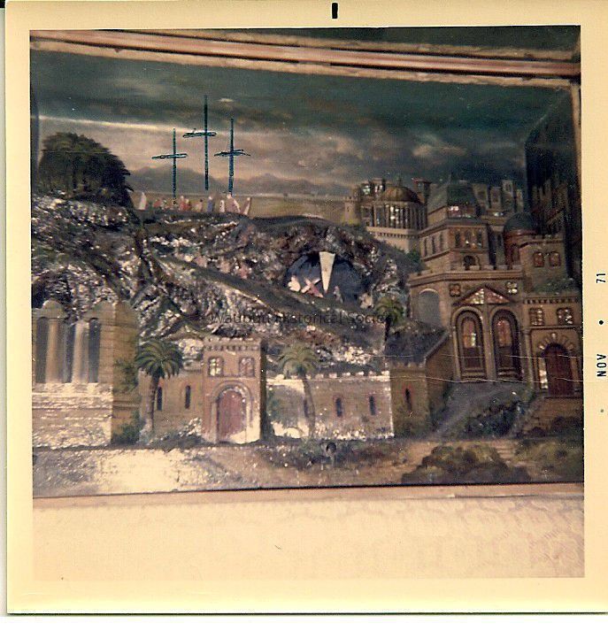 Photos that Jane Redman included with the Diorama. Date on the margin indicates Nov. 1971. In the second photo the crosses were written on the photo. They appear during the operation of the diorama.Acquisition