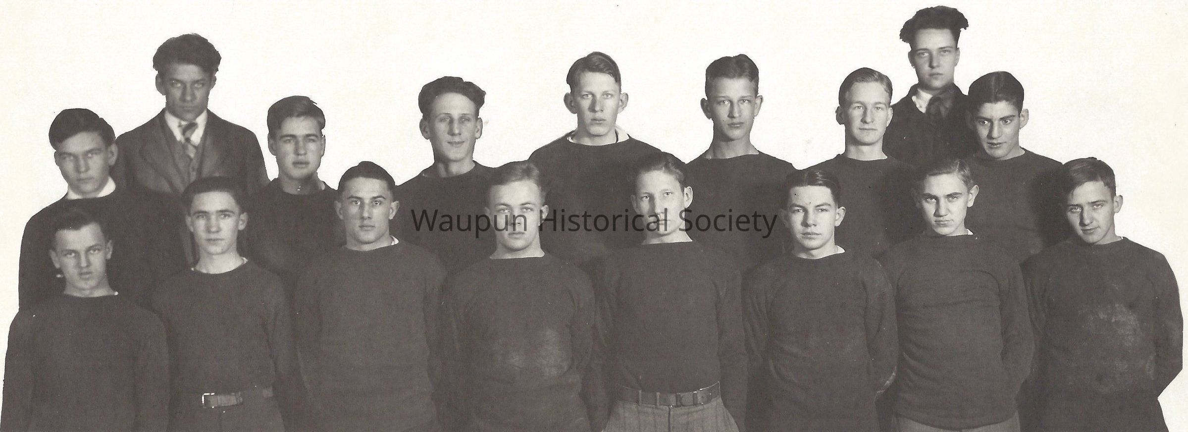 1928 Waupun High School Football team. On the back of the photo, it says they took 3rd place in the Little Ten Conference that year. Names were not included. The annuals were used in an attempt to identify the persons in this photo.