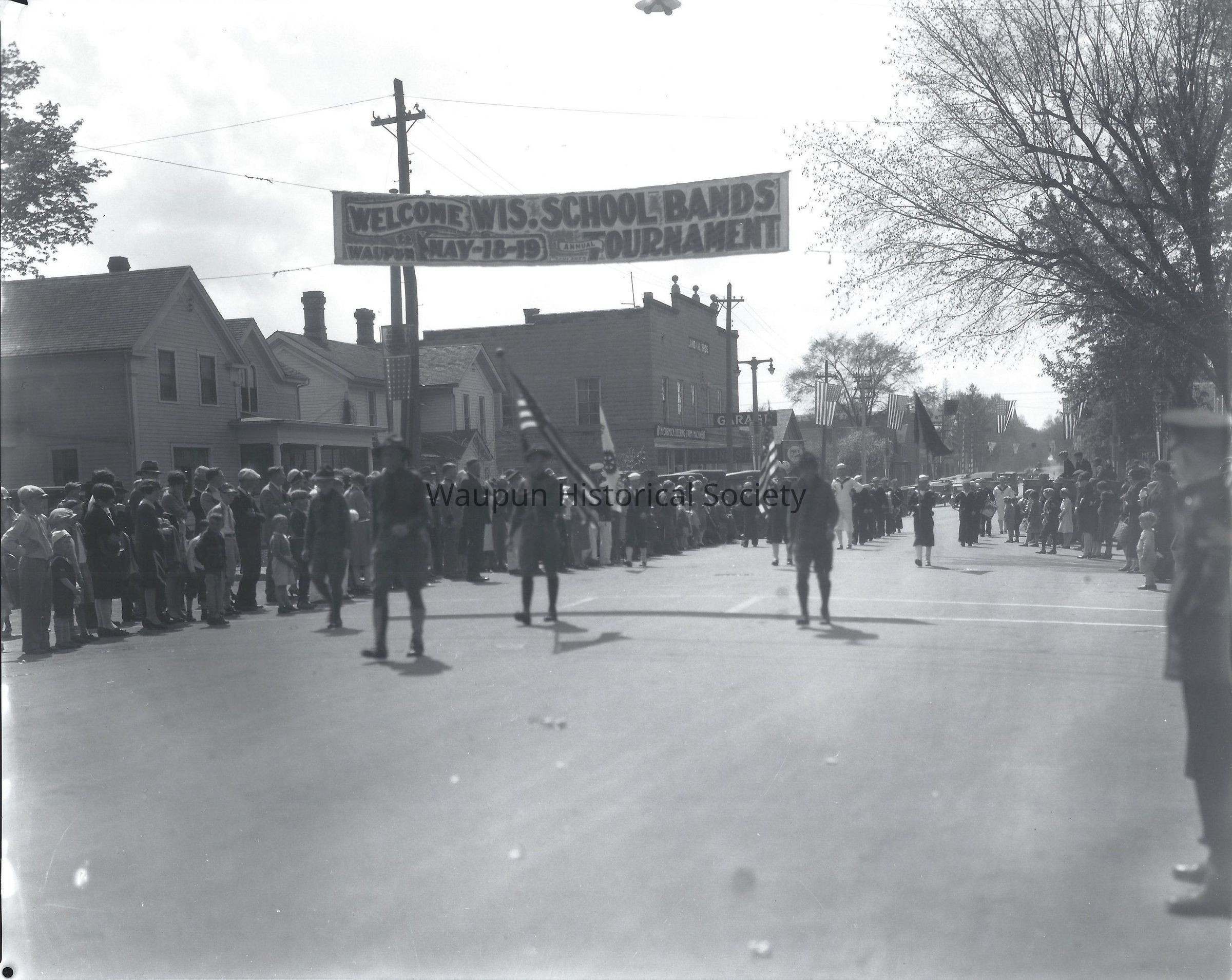 Scene from the parade, State Band Tournament at Waupun. May 18th and 19th, 1928.Acquisition