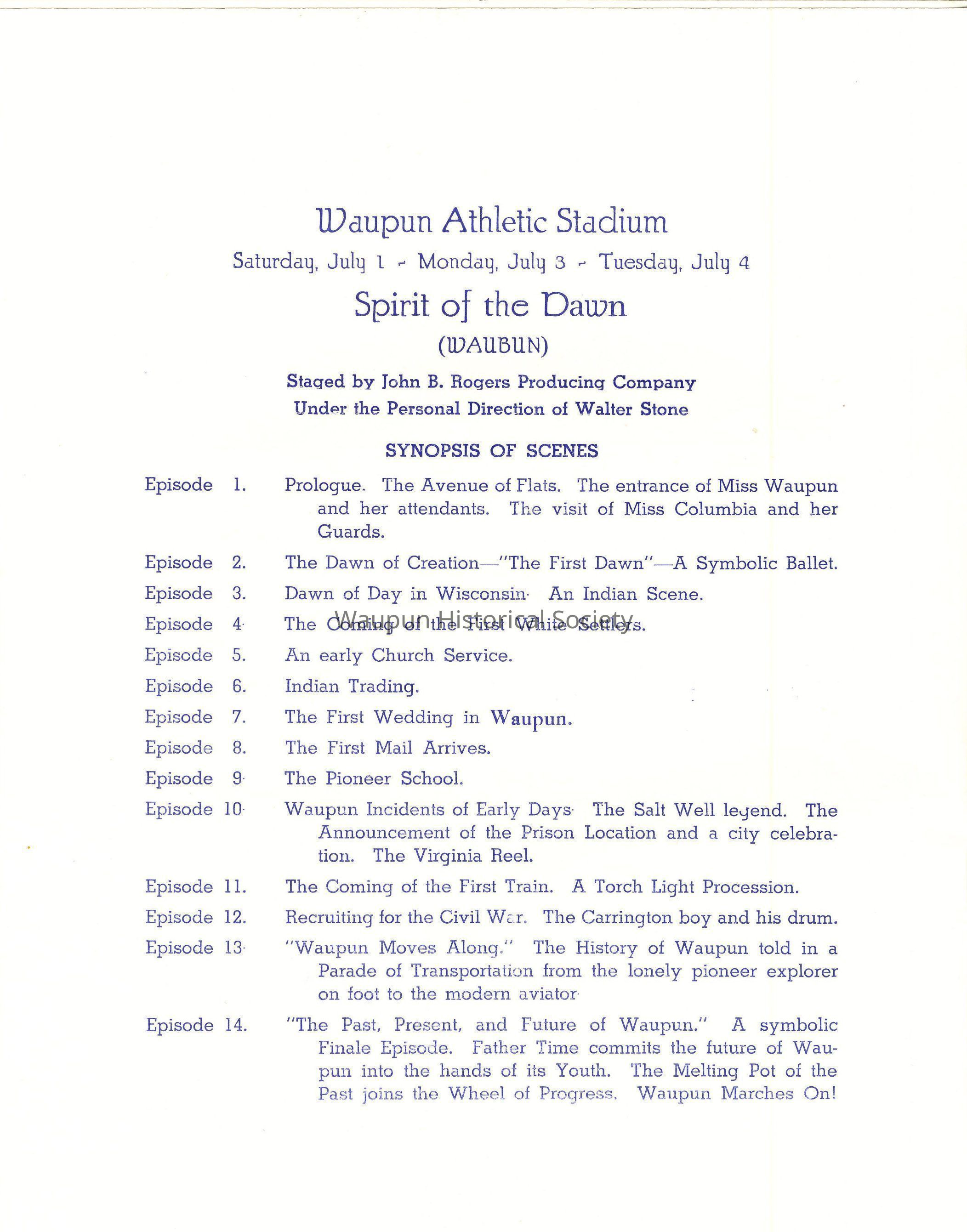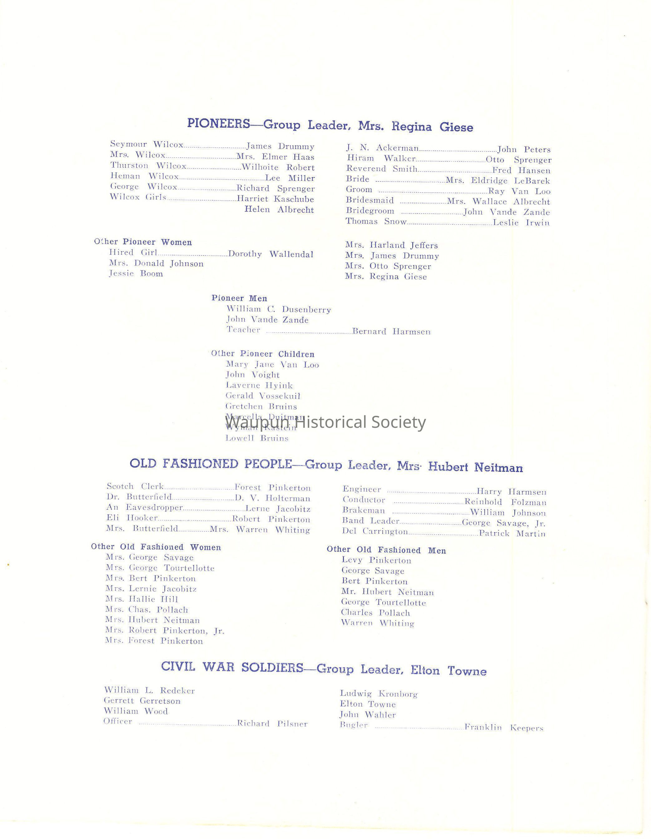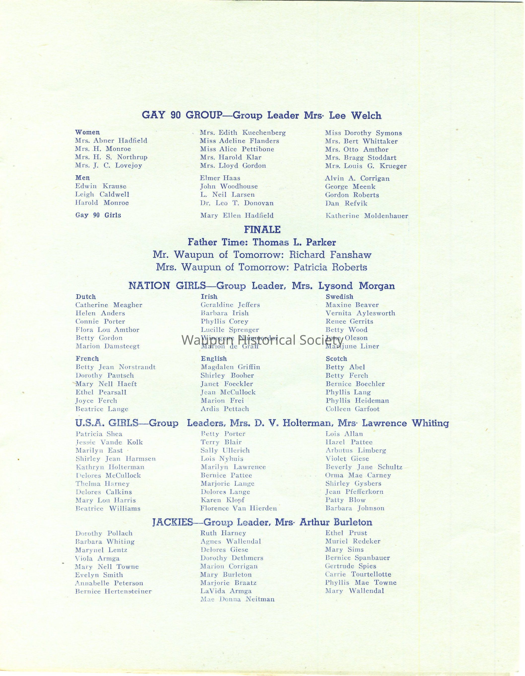It is a pleasure to greet you. We hope that your visit to us at the time of this Centennial Celebration, whether it be your first, or one of many, will be one whose pleasures you will long remember. Waupun has worked day and night to make this Celebration of her 100th Anniversary a success, and we hope that our efforts meet with your approval. "Make yoursevles at home"- and come to see us again - and often.