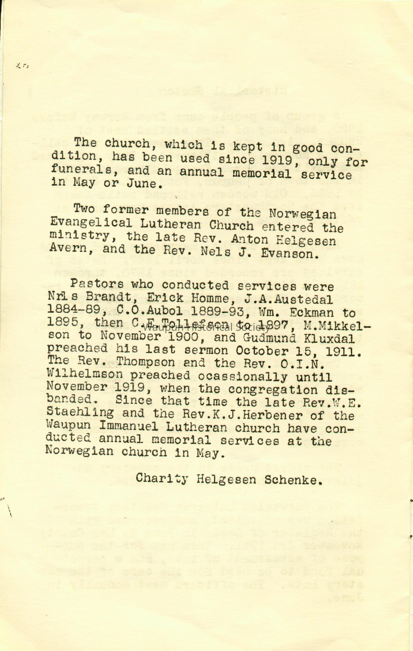 This is a multi page program for "THE 100TH ANNIVERSARY OF THE NORWEGIAN LUTHERAN CHURCH, TOWN OF WAUPUN, WISCONSIN" This event was hel on June 19, 1955. The history of the church is outlined in the program.Acquisition