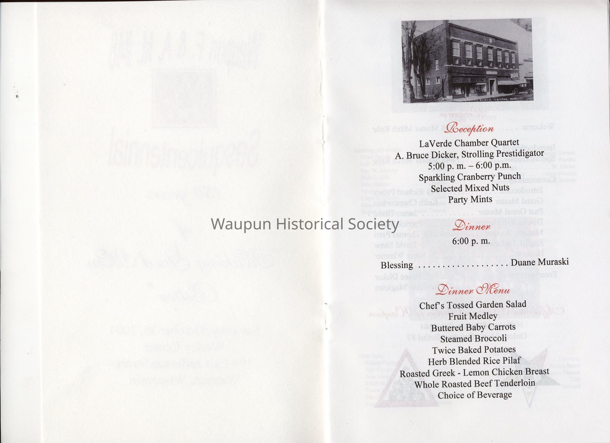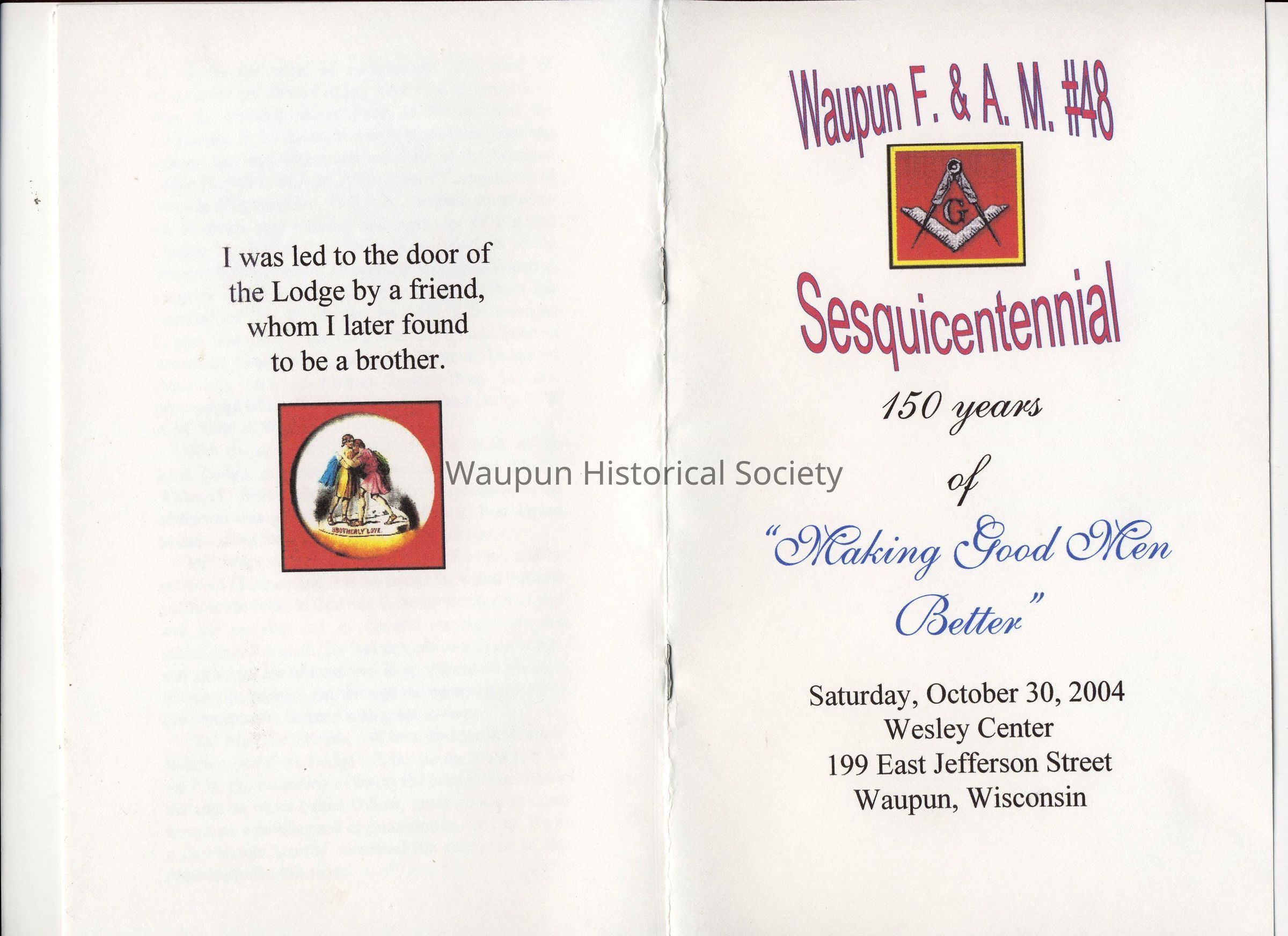 Masonic Lodge Program. Waupun F. & A. M. #48 Sesquicentennial celebration program