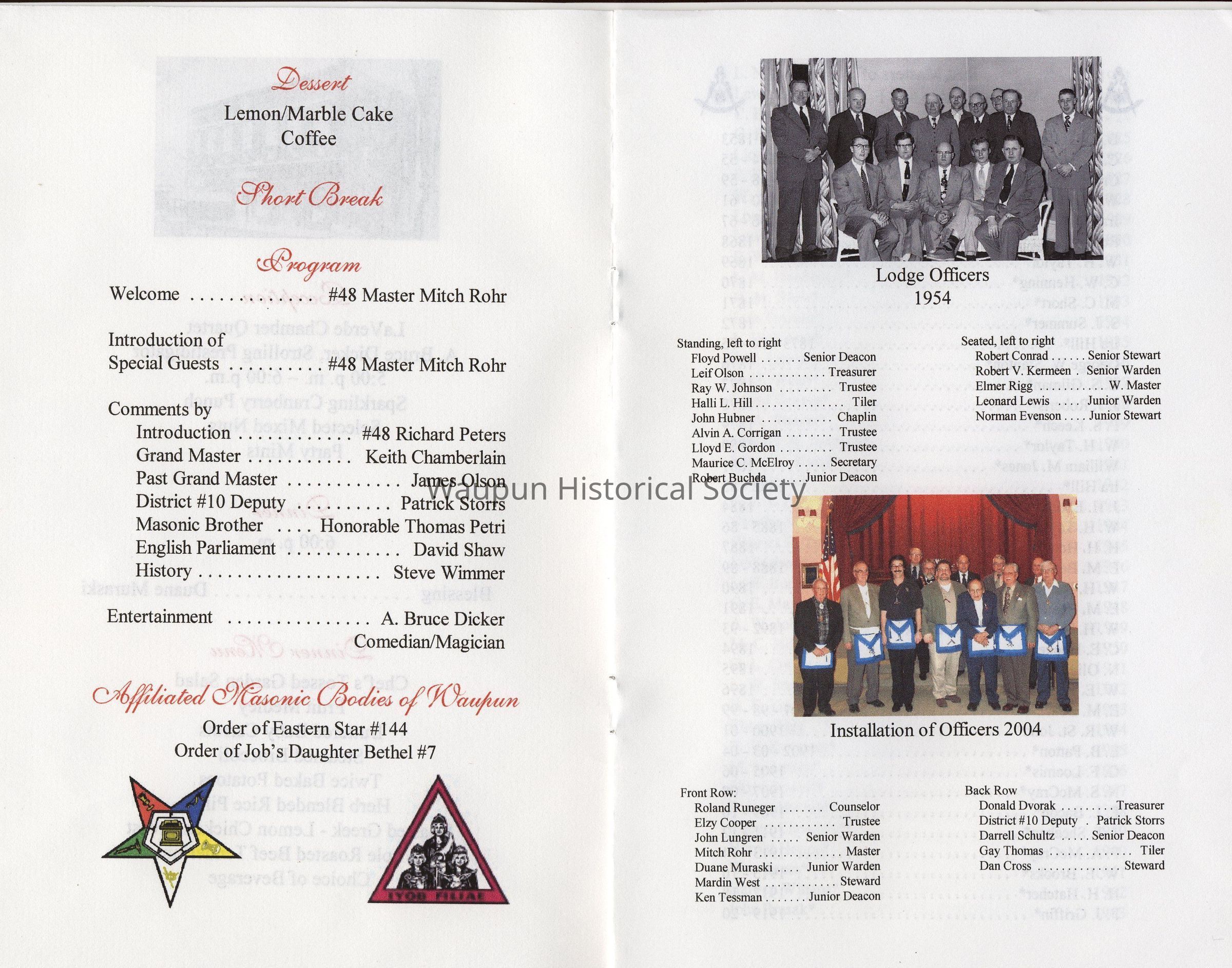 Program, Masonic Lodge F & A M #48, Sesquicentennial 150 Years, 2004Entry/Object ID