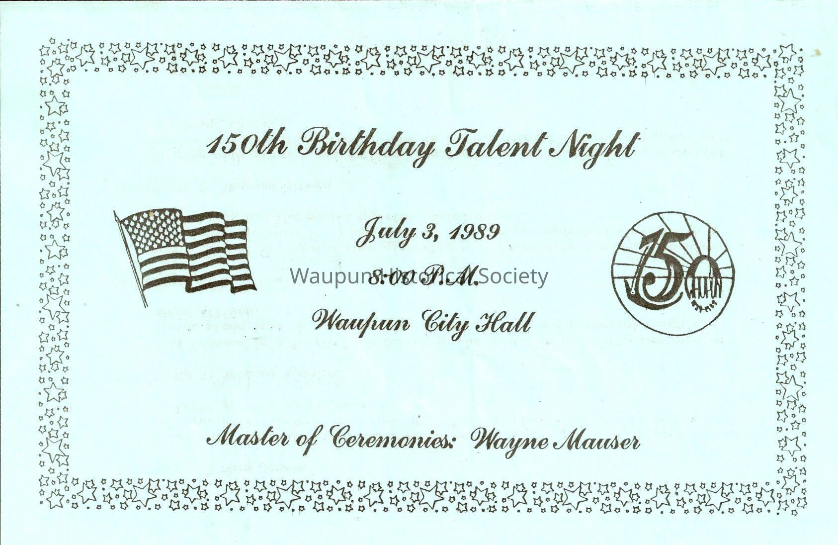 150th Birthday Talent night . July 3, 1989