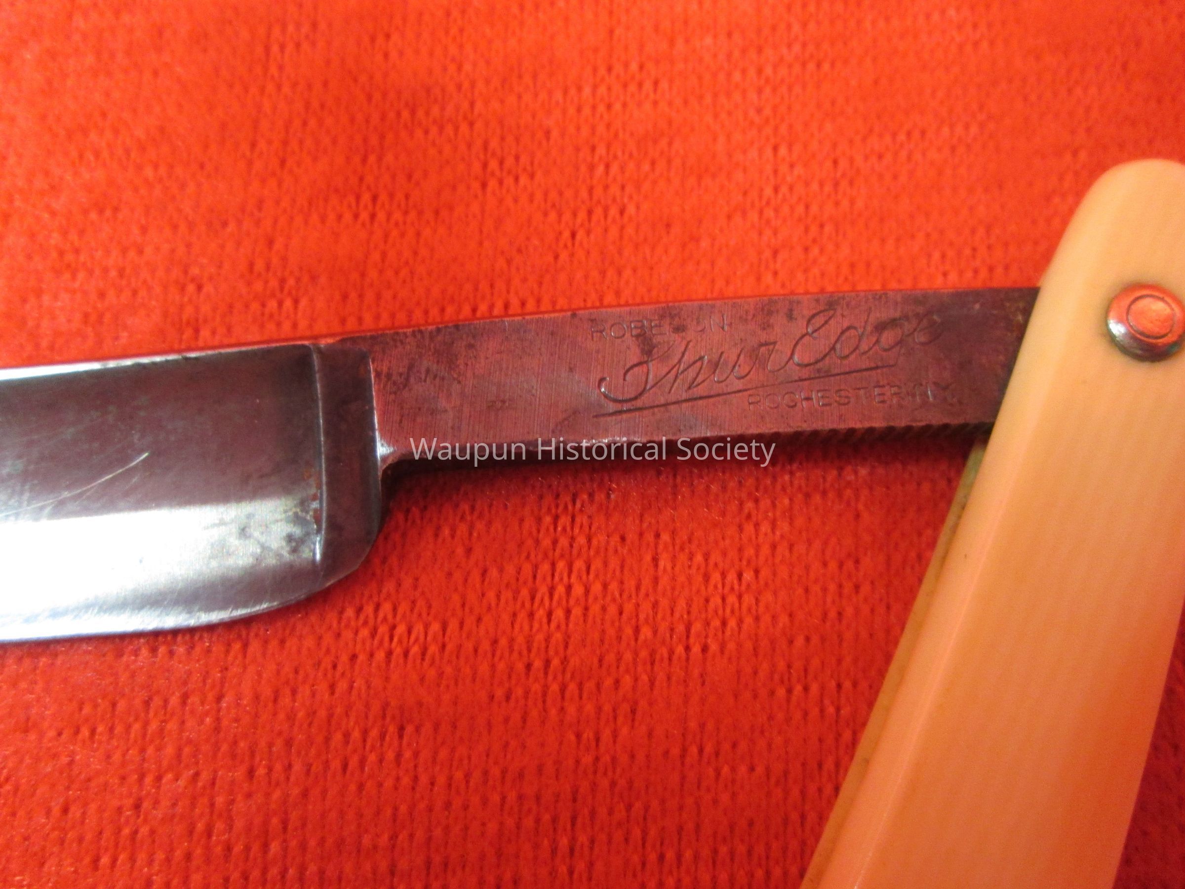 Ivory celluloid straight-edge razor, medium blade, manufactured by Robeson, ThurEdge of Rochester, NY - Model number 14-K-400Acquisition