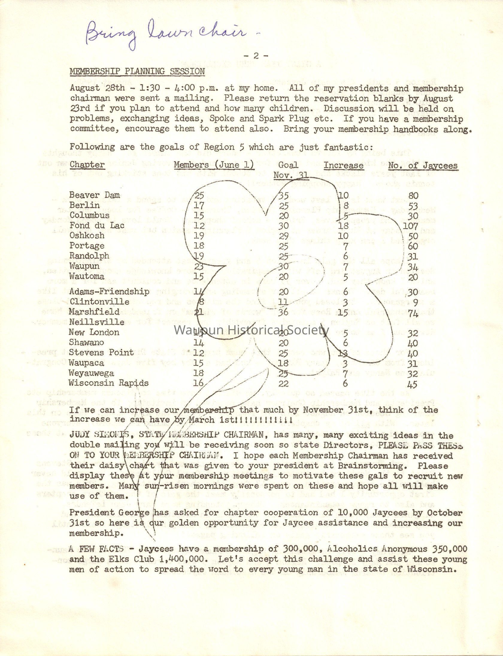 Saturday I will be attending Region 4 Planning Session, VP's Arlene Haunschild and Mary Dippold. Region 4 and Region 5 will surely make a large contribution towards membership of the Wisconsin Jaycettes.