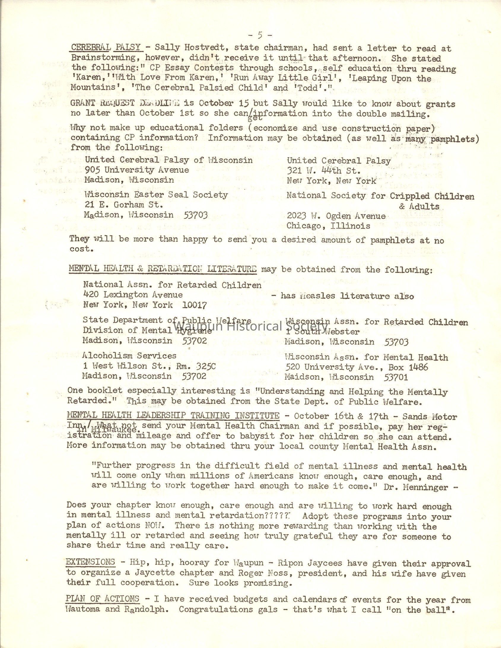 Region 5 Wisconsin Jaycettes NewsletterEntry/Object ID